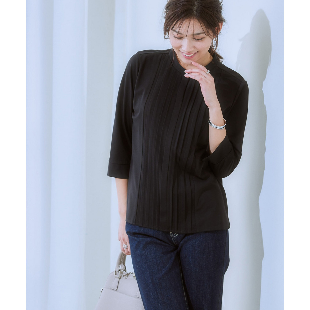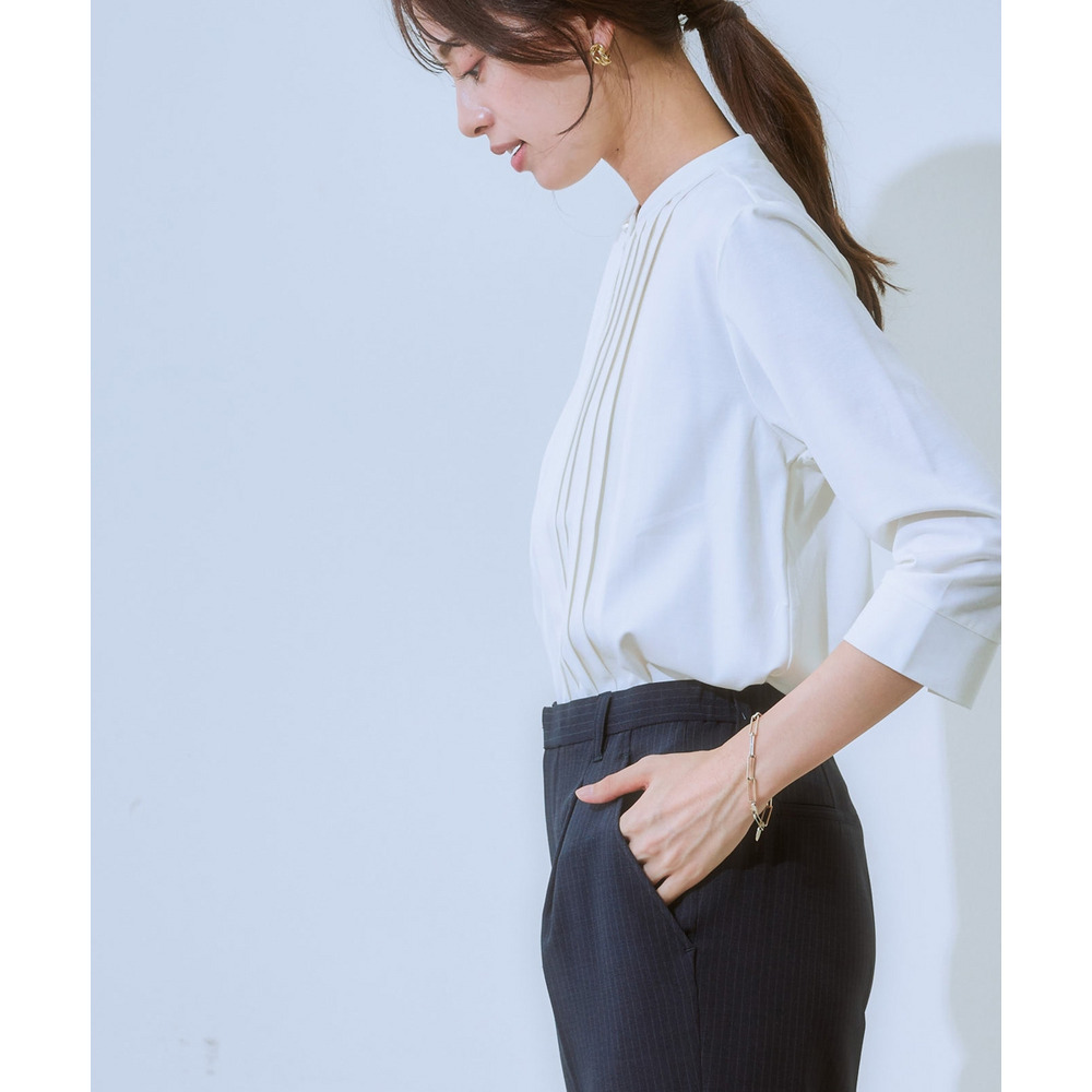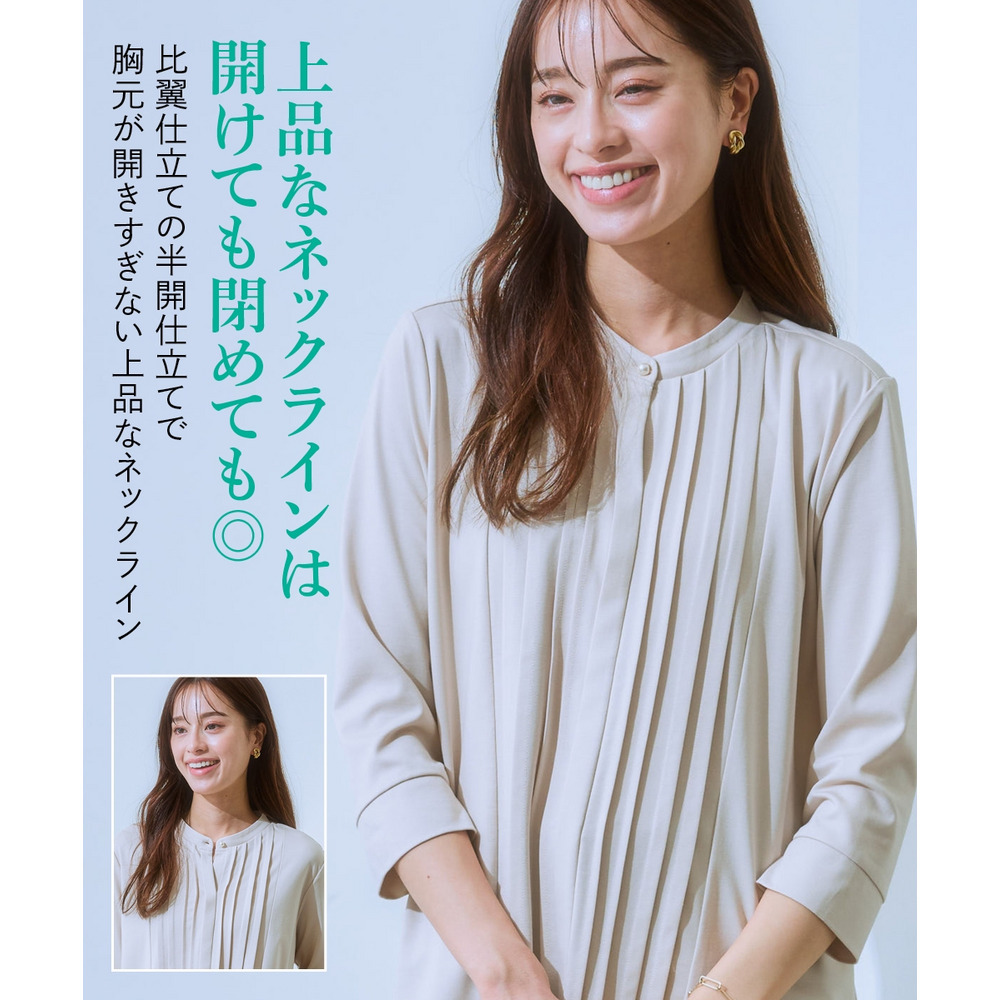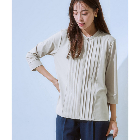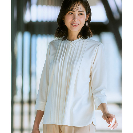 華やかなVゾーンを演出するピンタックで、ブラウス級のきれいを叶えます。