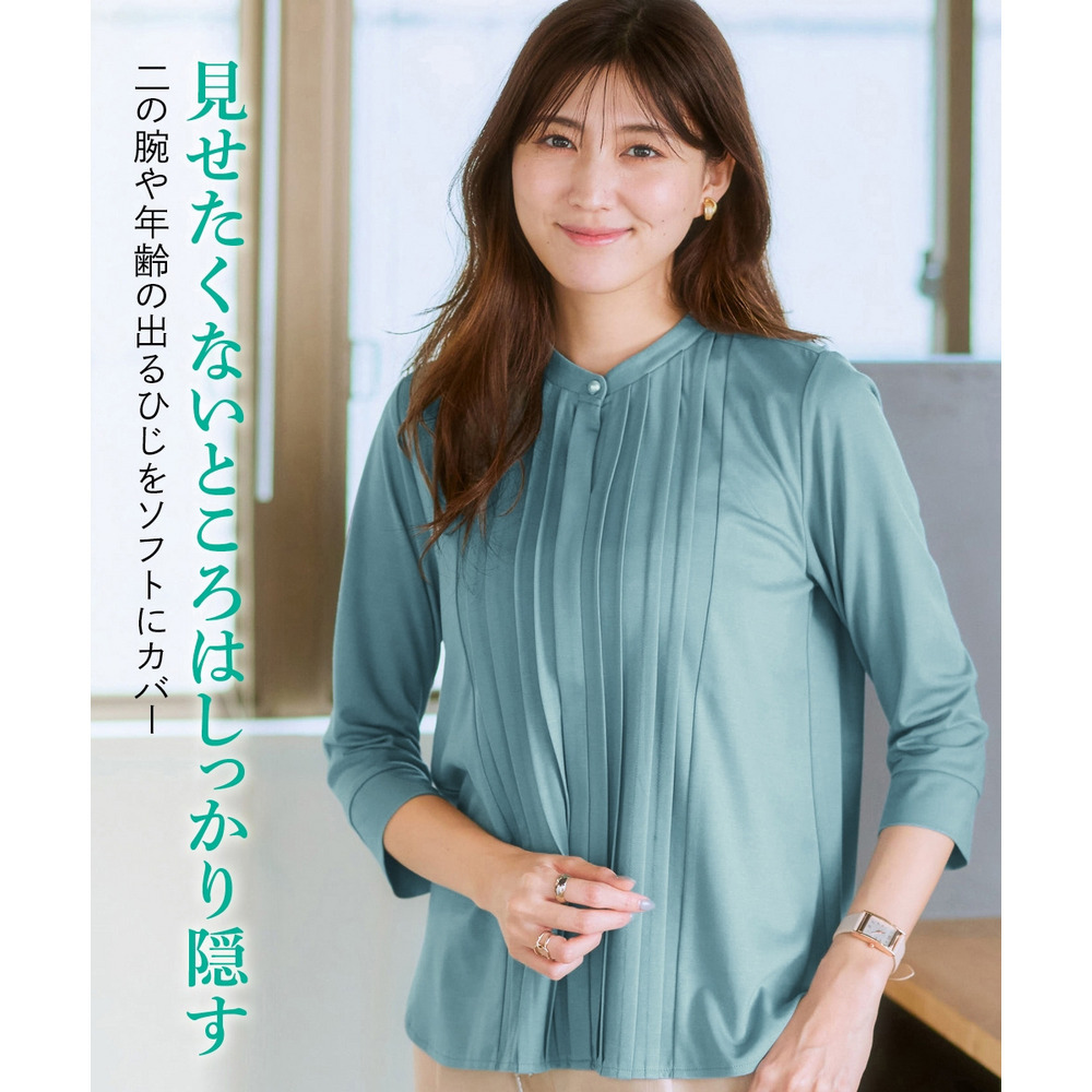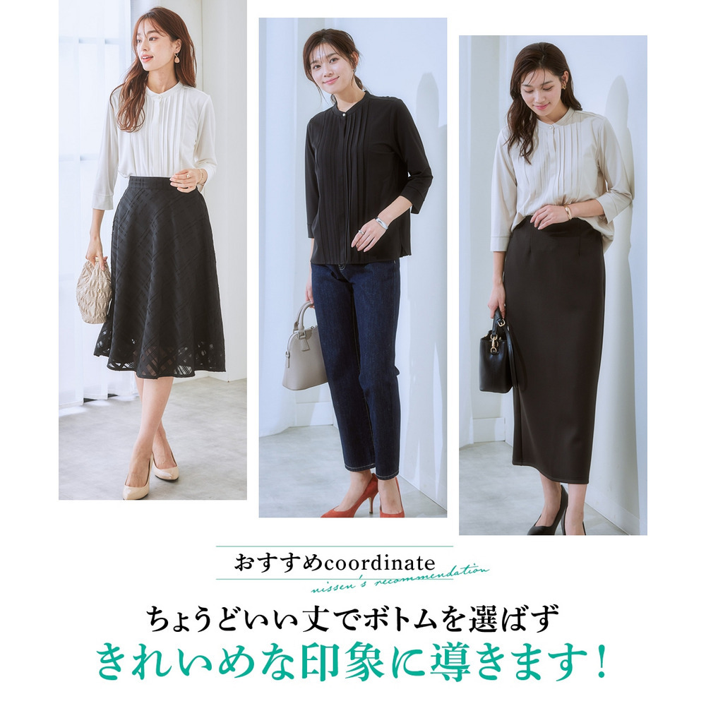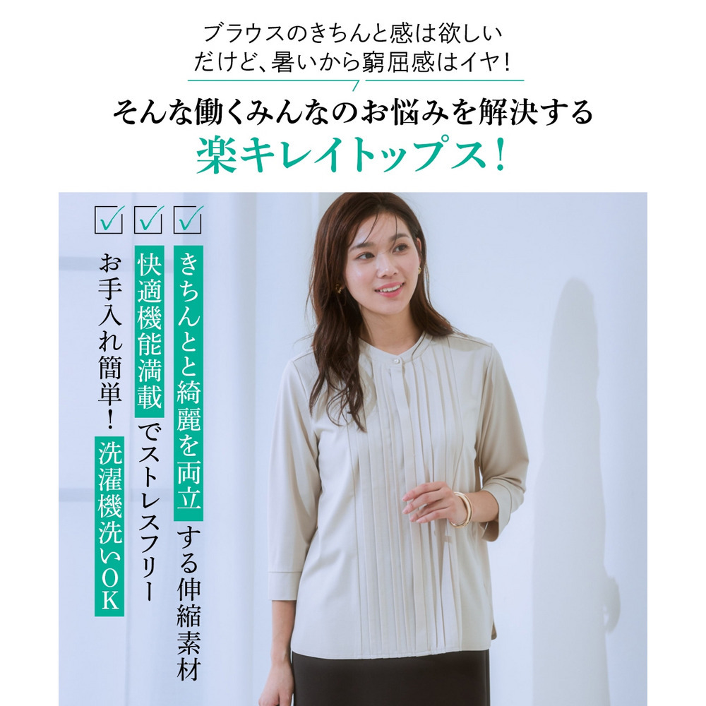 華やかなVゾーンを演出するピンタックで、ブラウス級のきれいを叶えます。