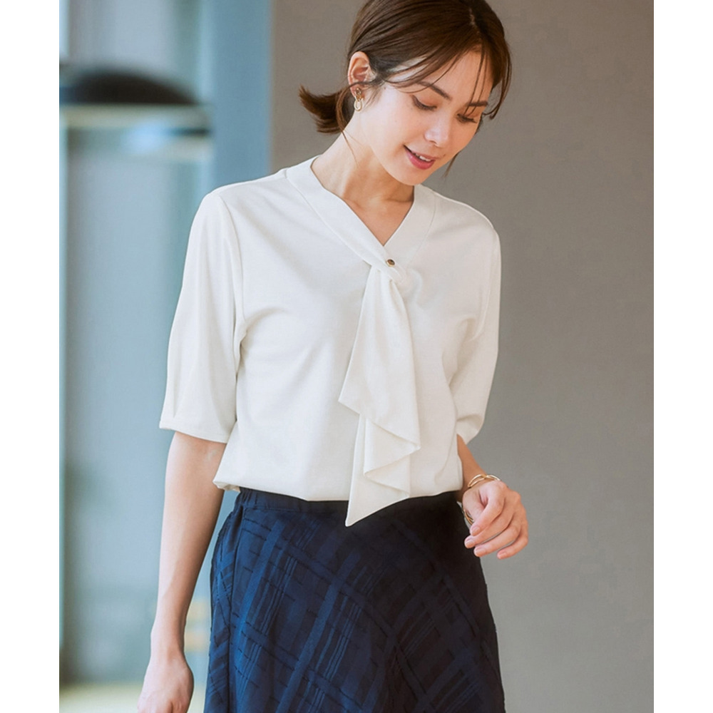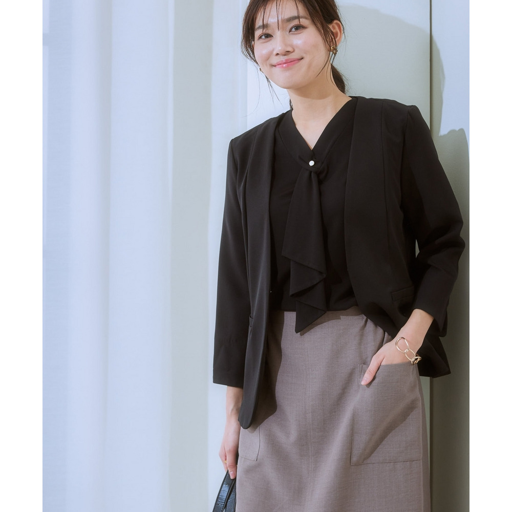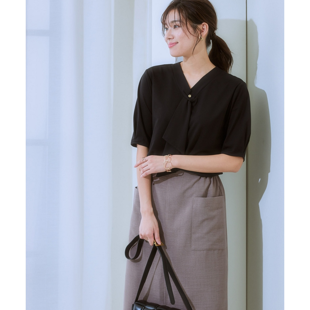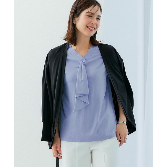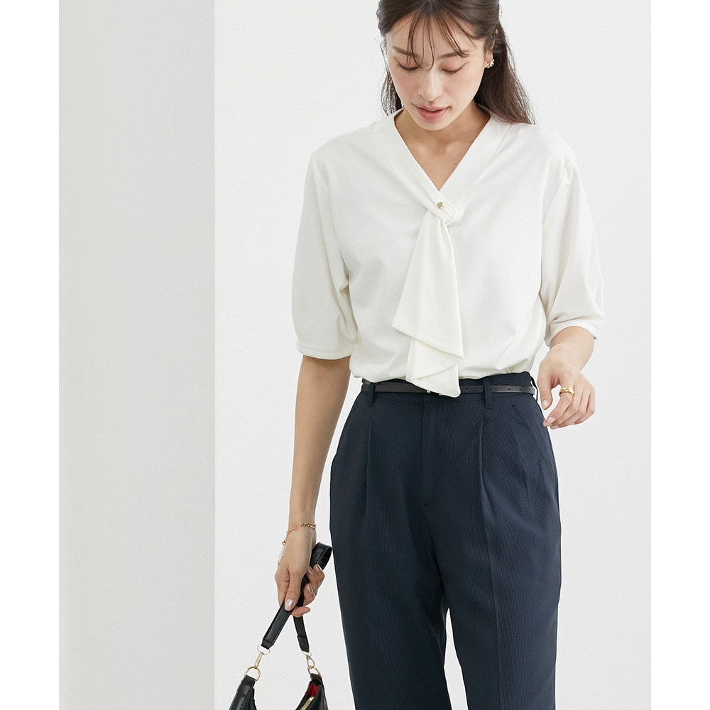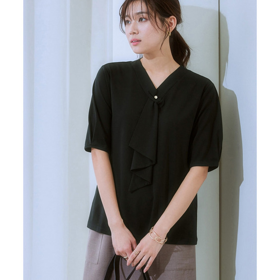 ・Vネックとフリルタイが効いているので、きれいに決まるジャケット合わせがおすすめです。