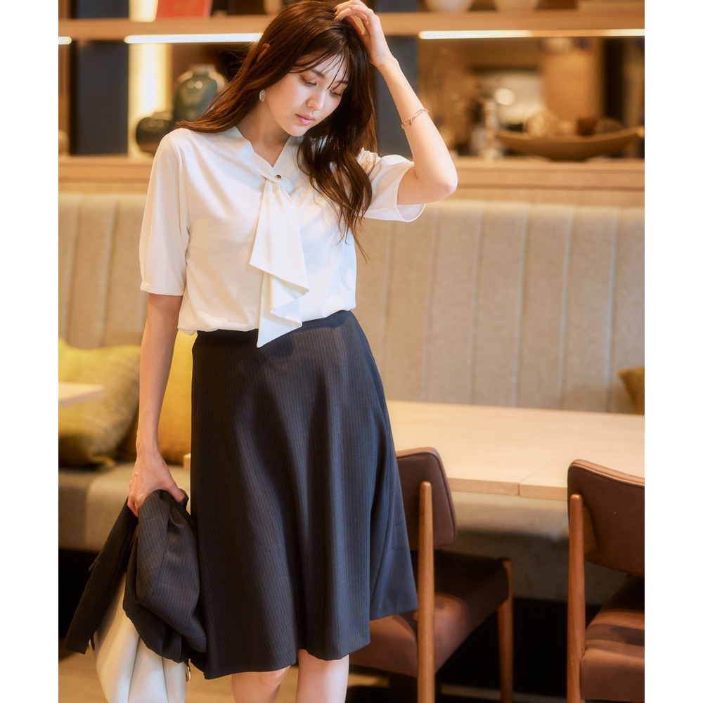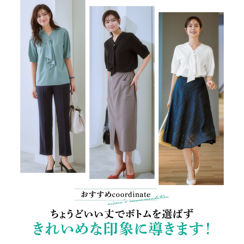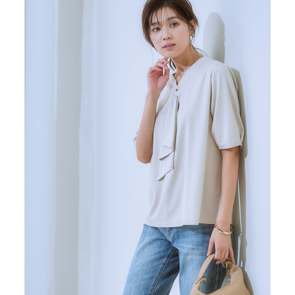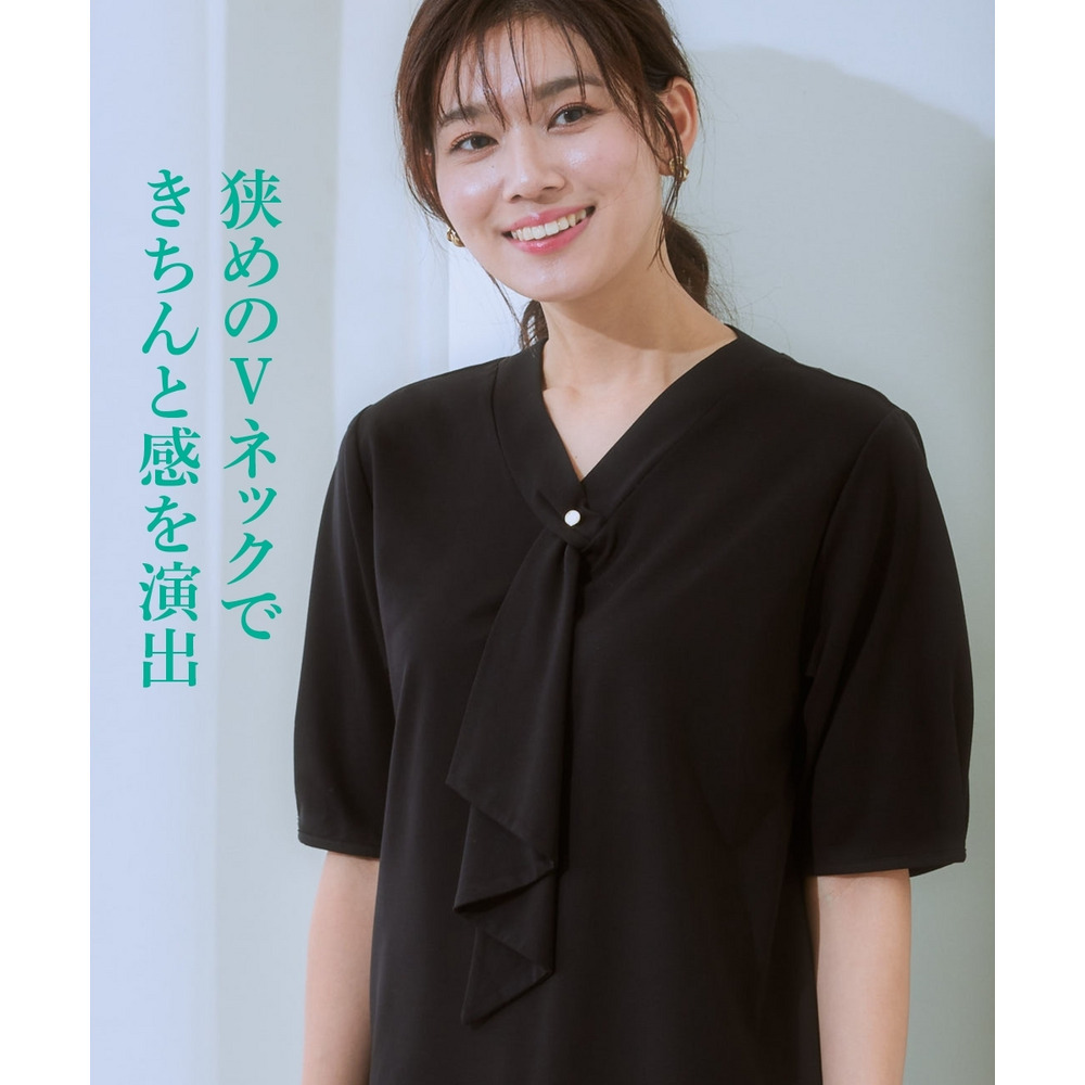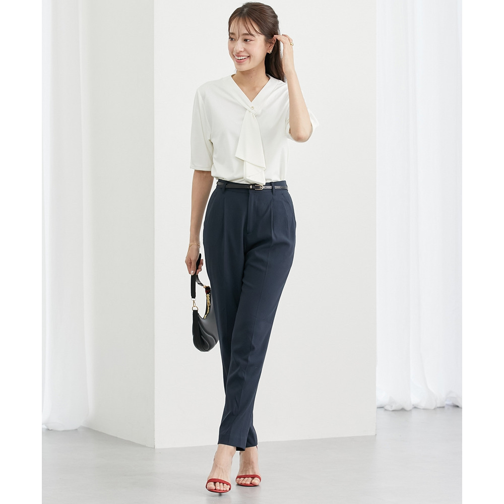 ・Vネックとフリルタイが効いているので、きれいに決まるジャケット合わせがおすすめです。