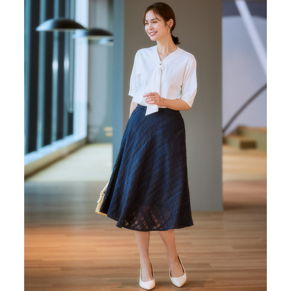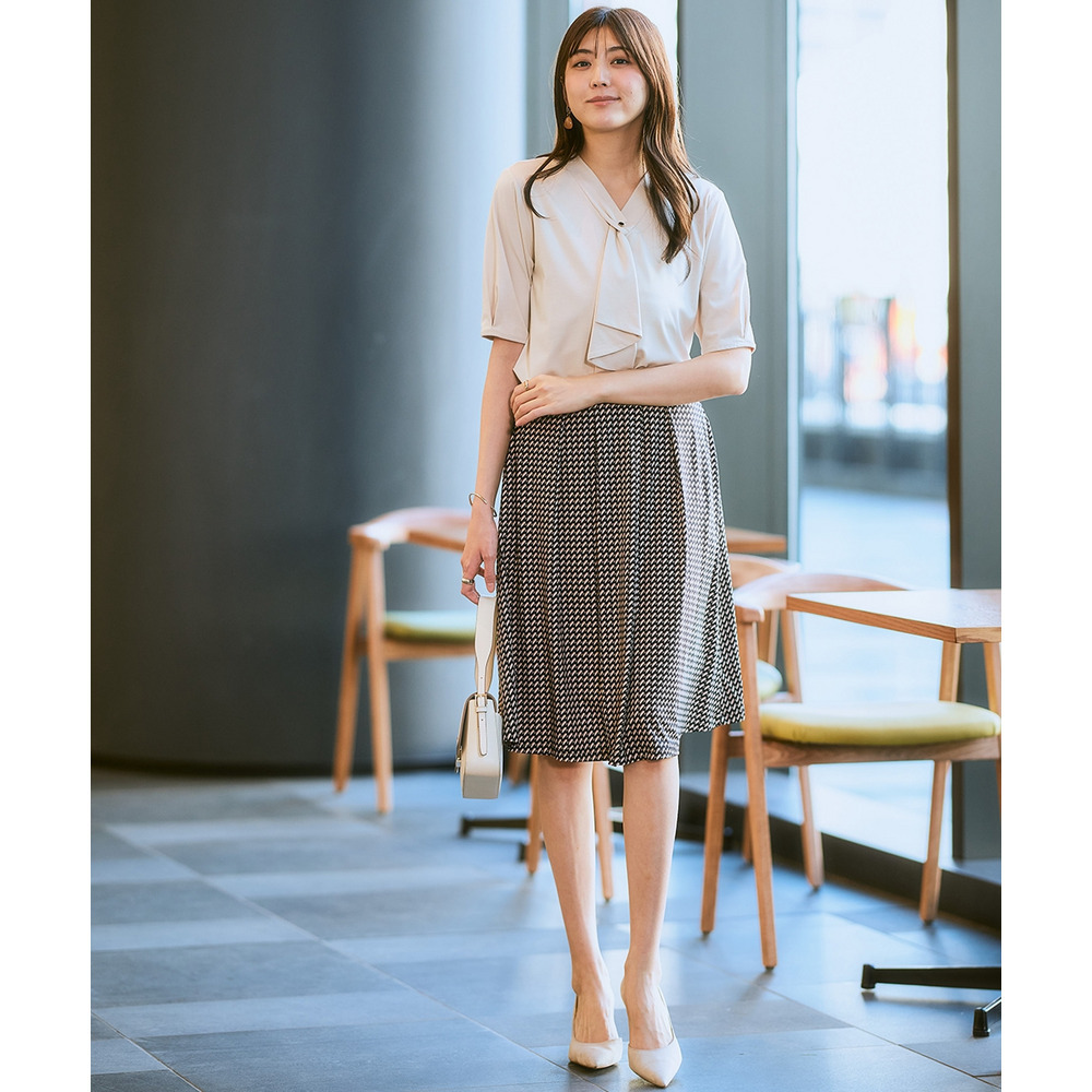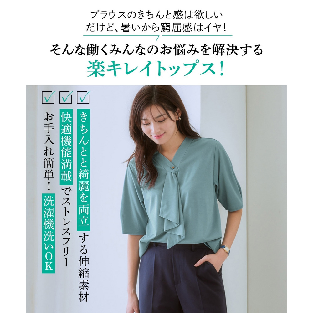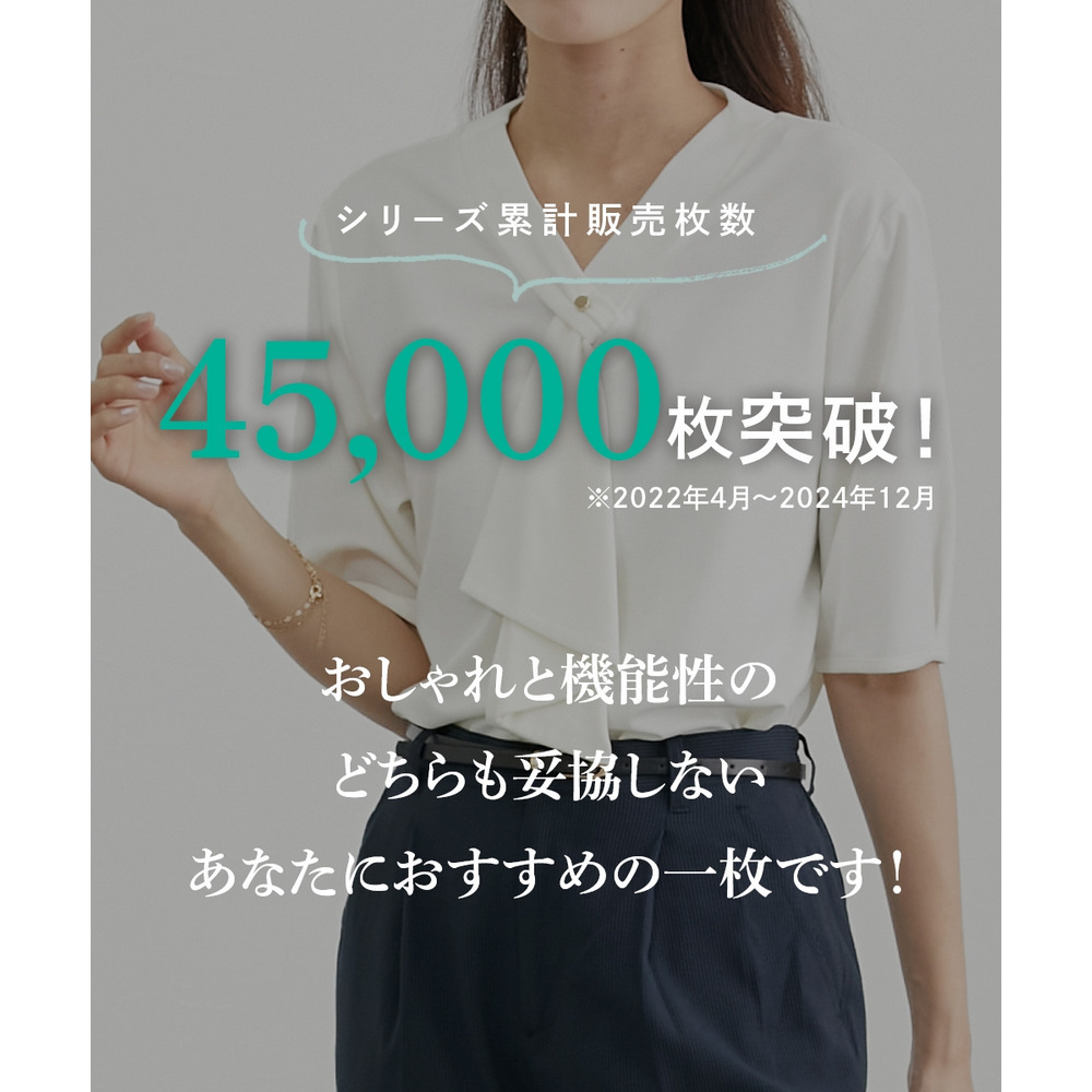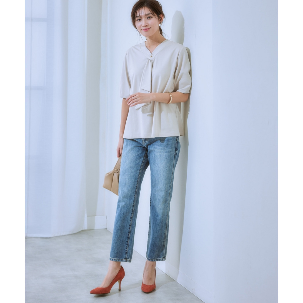 ・Vネックとフリルタイが効いているので、きれいに決まるジャケット合わせがおすすめです。