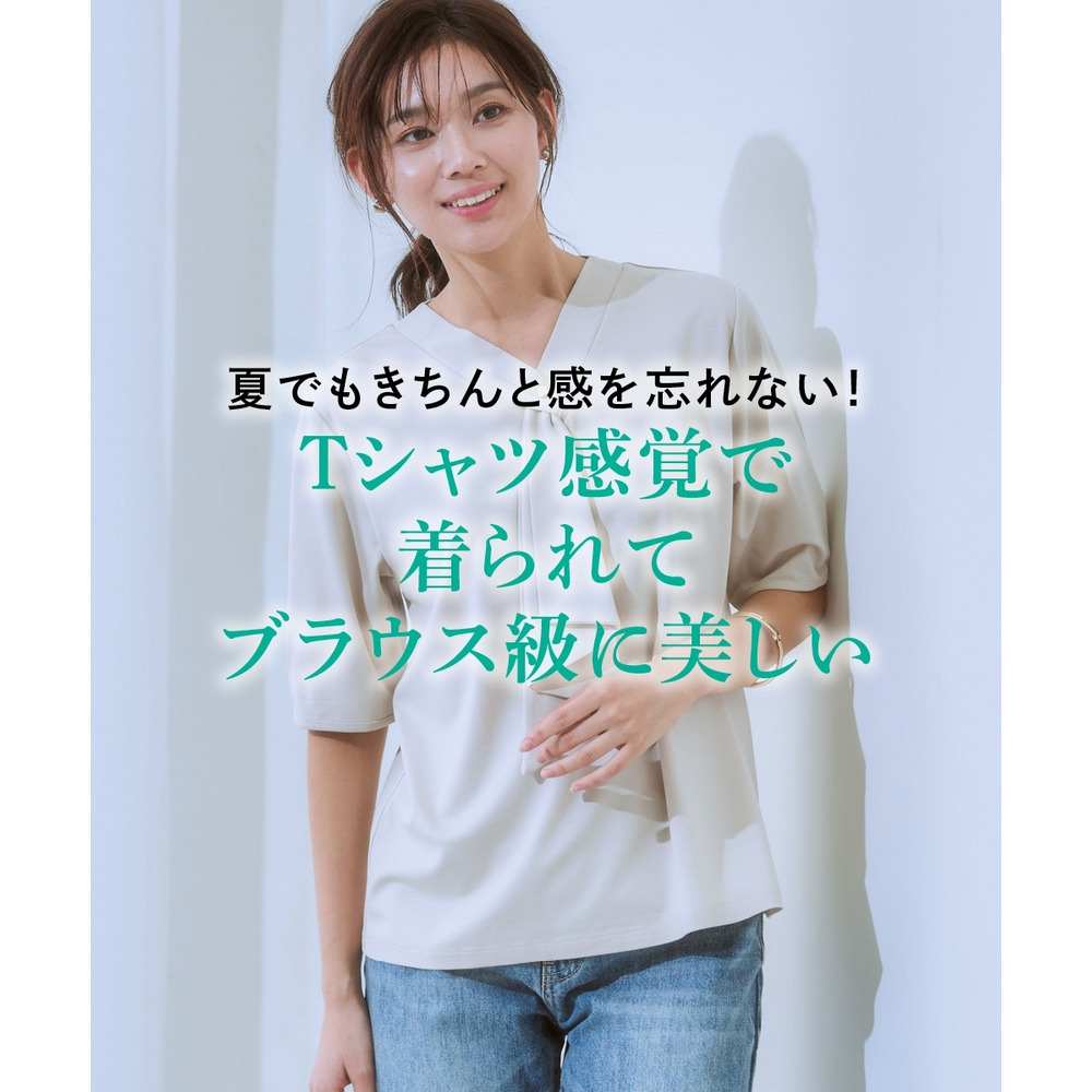 ・まるでブラウスのような美しい表面感のカットソーポンチトップス。