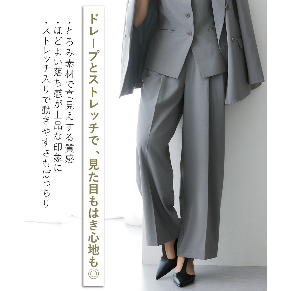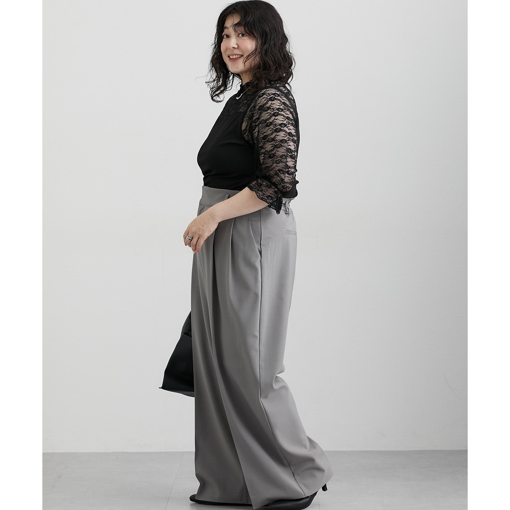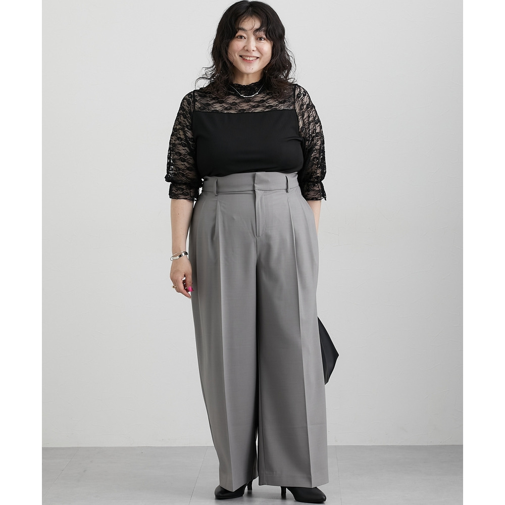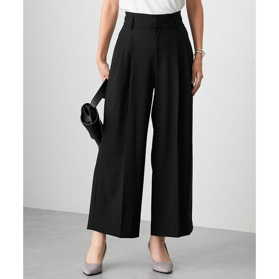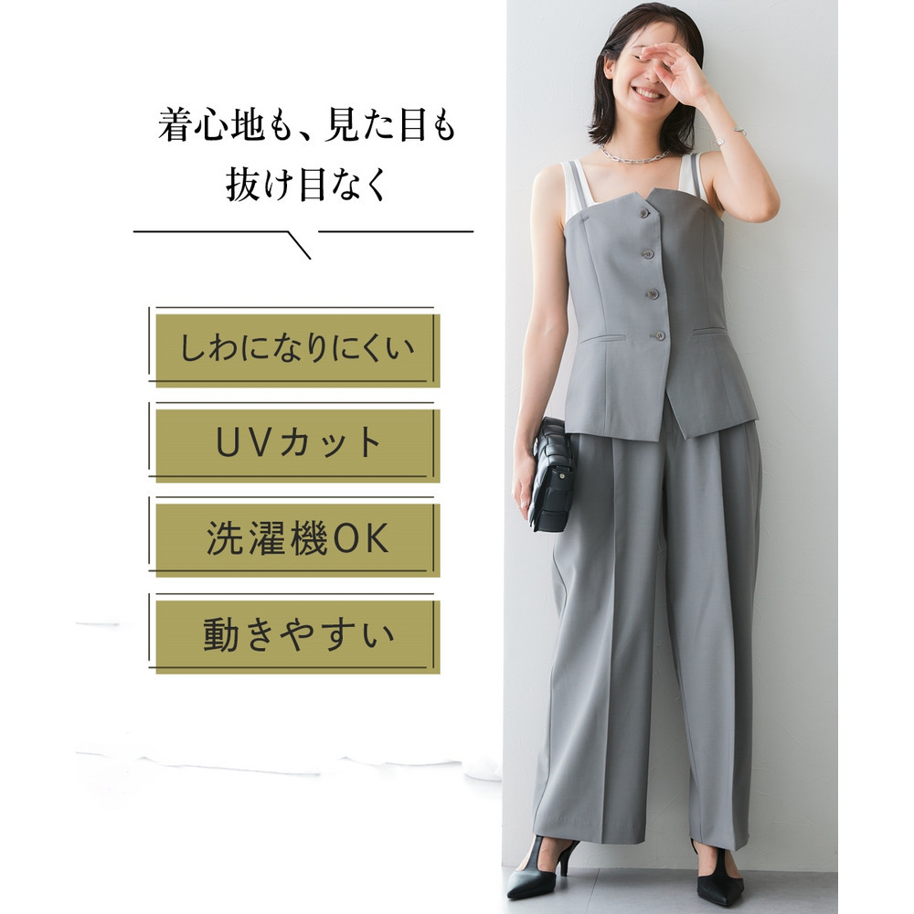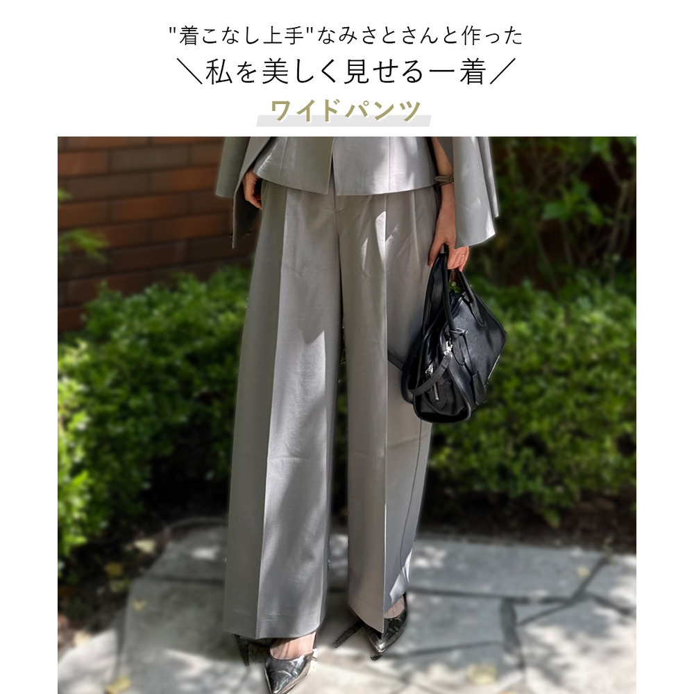 【みさとさんコラボ】センタープレスタックワイドパンツ(しわになりにくい・UVカット) 大きいサイズ