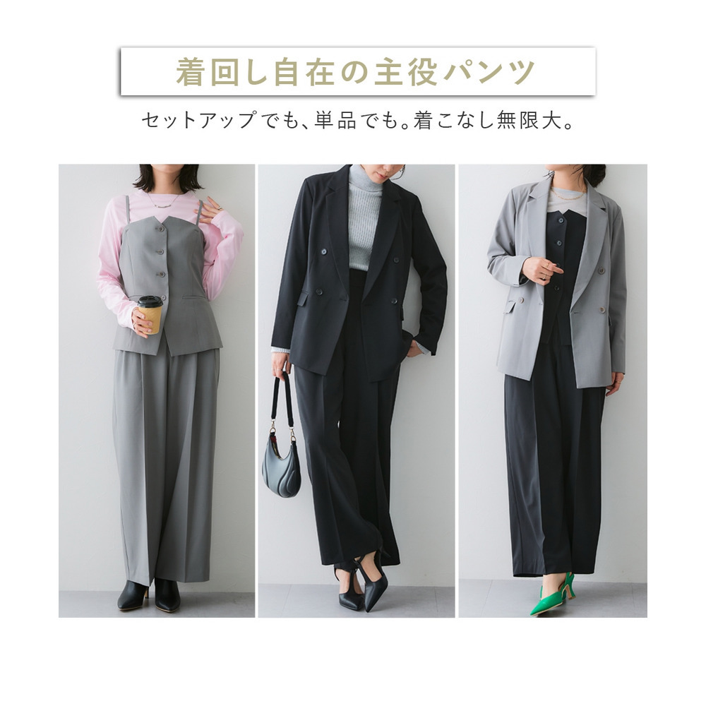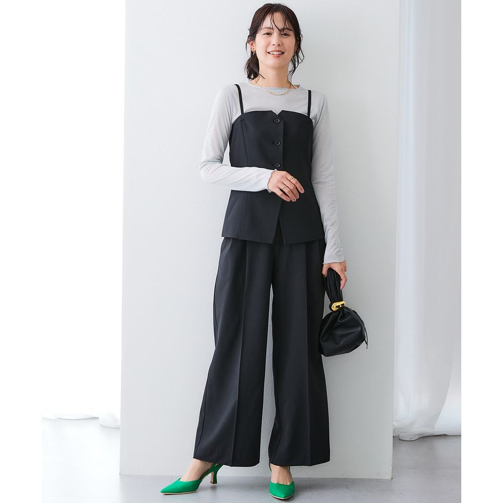 ・同素材のジャケット・ビスチェとのセットアップ使いでシックに。