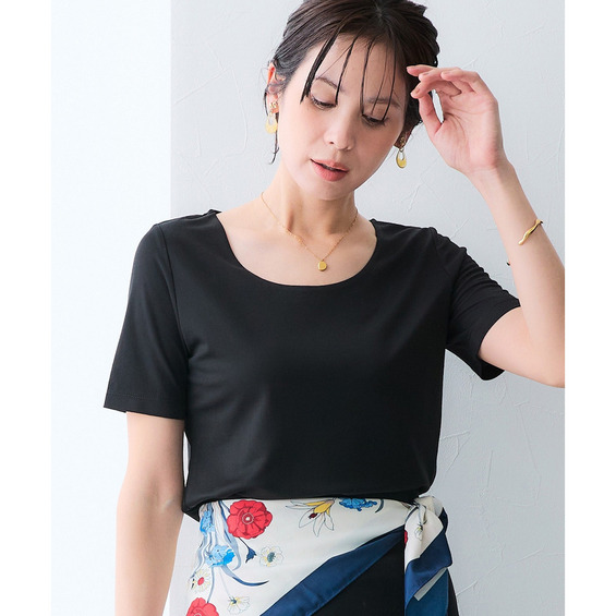 • (選べる2タイプ)透け対策シルケット加工ダブルフロント半袖トップス 大きいサイズ6