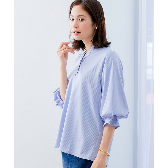 ・ブラウス見えするのに実は着心地楽ちんなカットソー素材のハイクオリティトップス。
