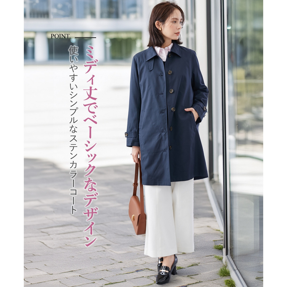 ・ベーシックで使いやすいシンプルなミディ丈ステンカラーコート。