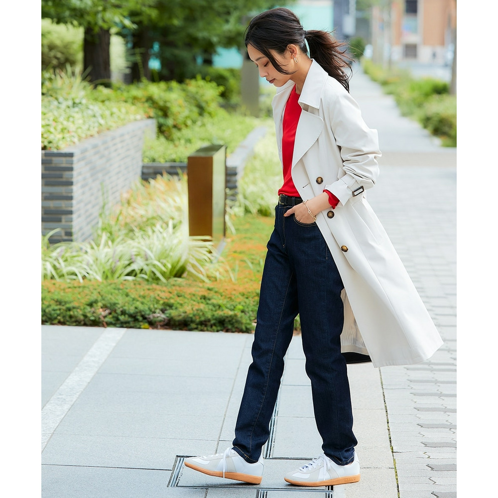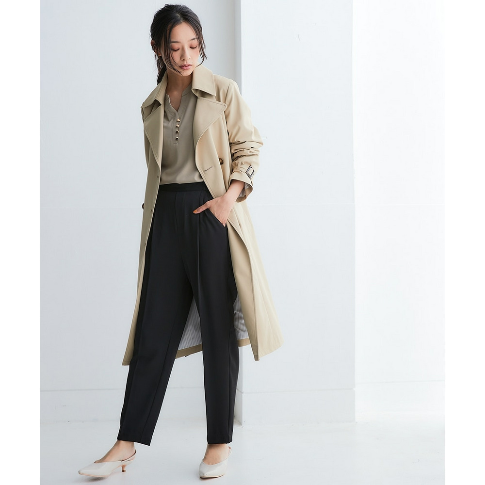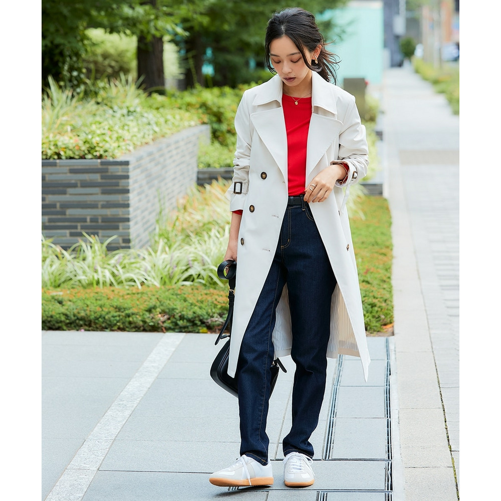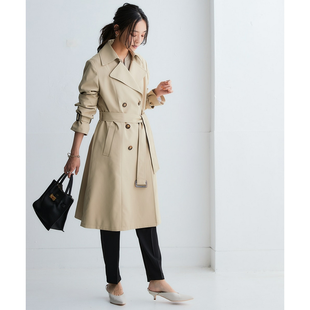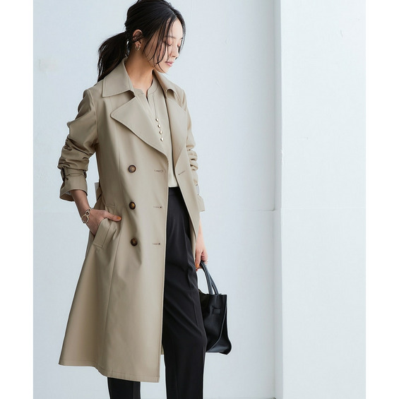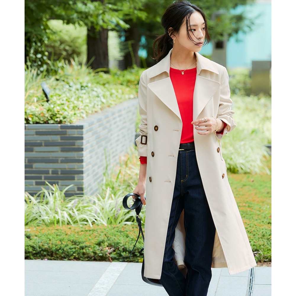 通勤にはもちろん、休日のお出かけにも合わせやすい着回し力抜群なベーシックトレンチコート。