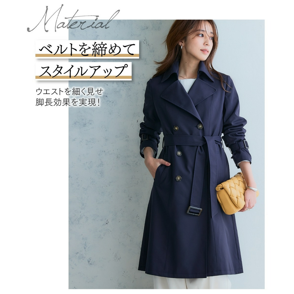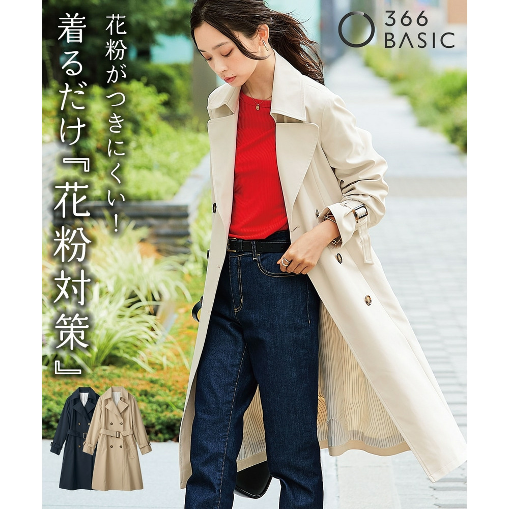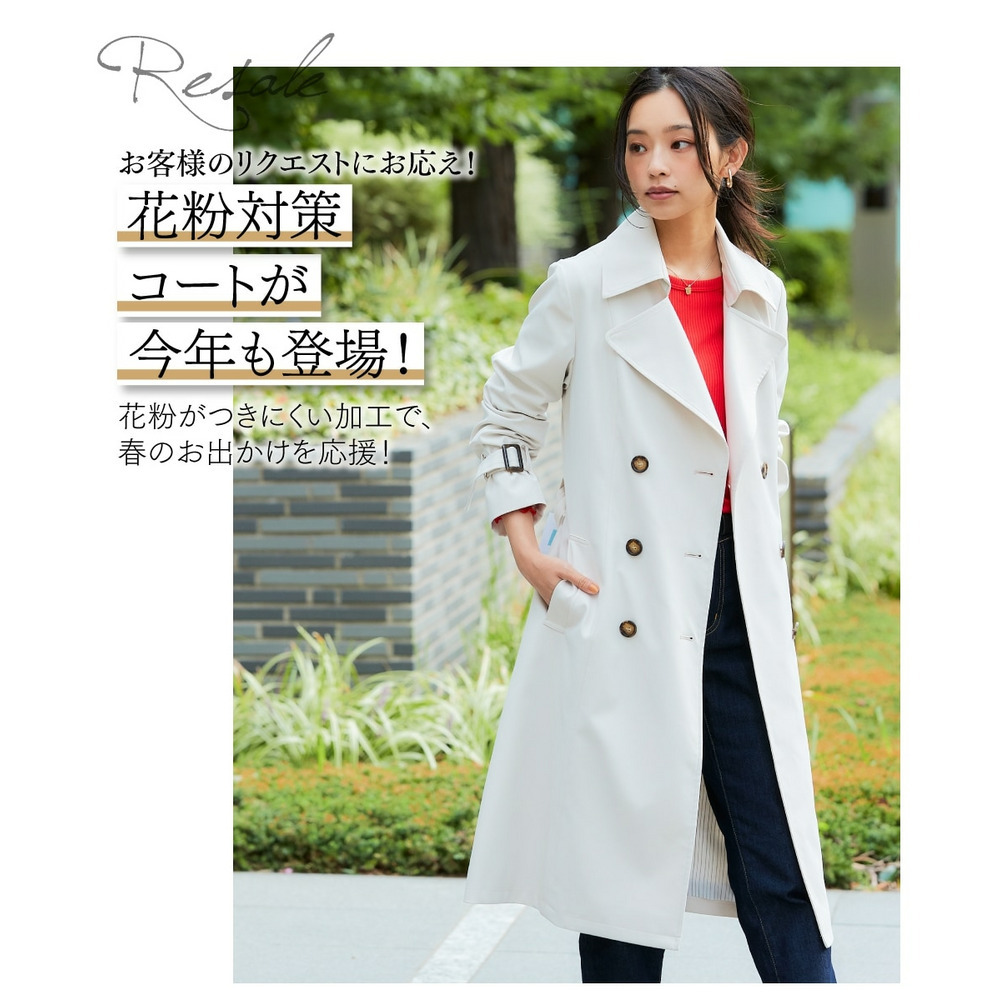 高水準のはっ水加工と、花粉が付きにくく落ちやすい加工が付いており高機能なトレンチコート。