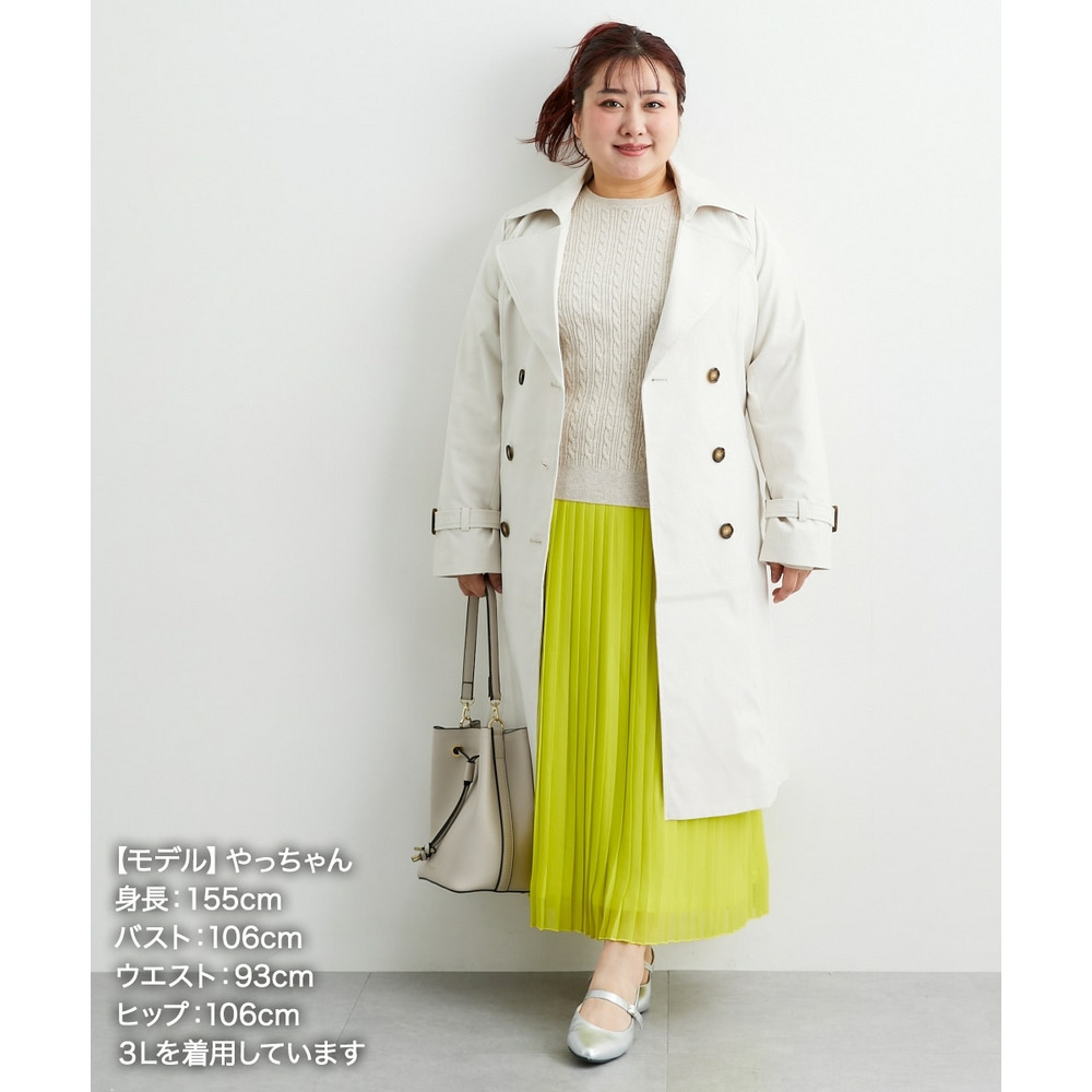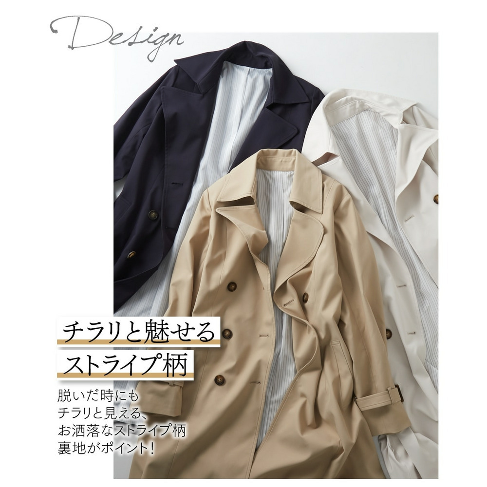 【花粉がつきにくい】トレンチコート(裏地ストライプ・共布ベルト付)(はっ水) 大きいサイズ