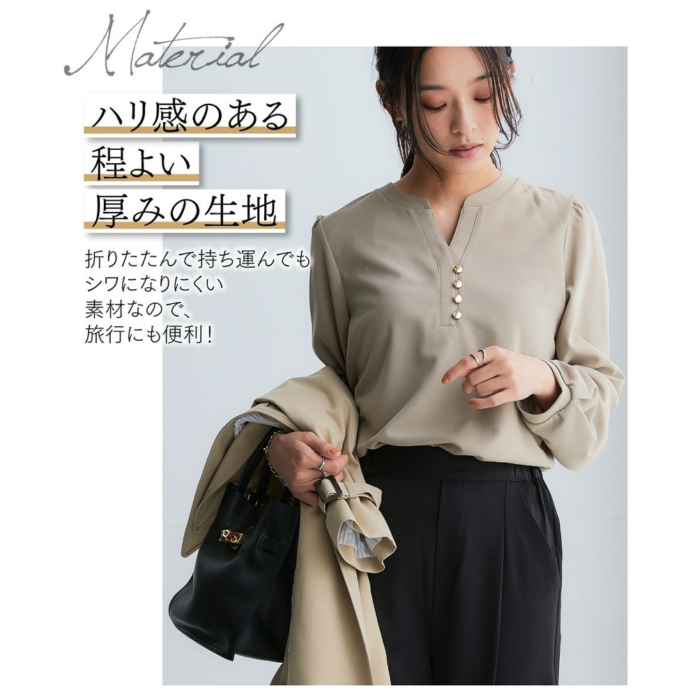 バックル付きの袖ベルトがおしゃれポイント。