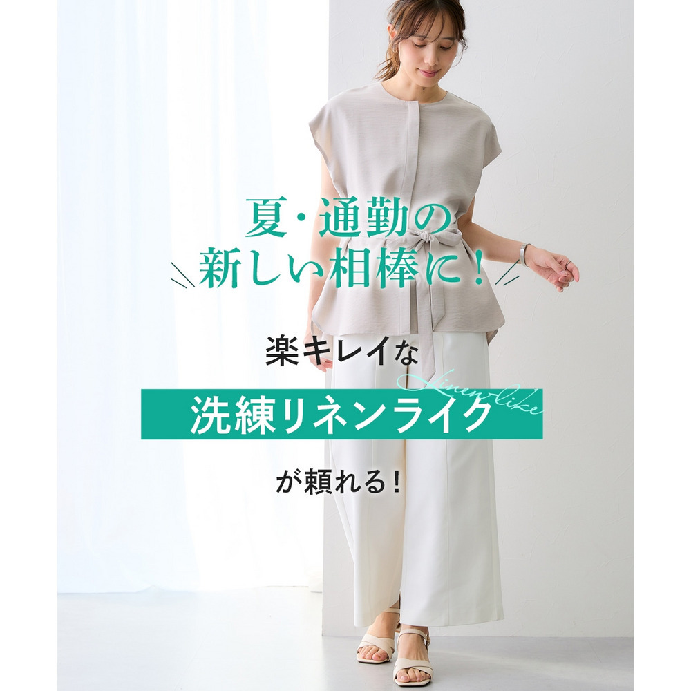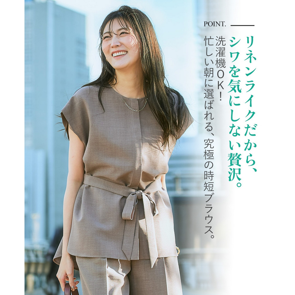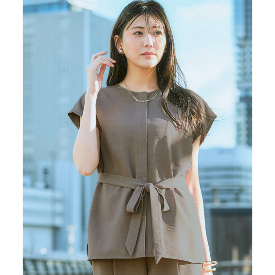 上品なネックライン:スッキリとした首元が、洗練された「働く女性」の印象を引き立てます。