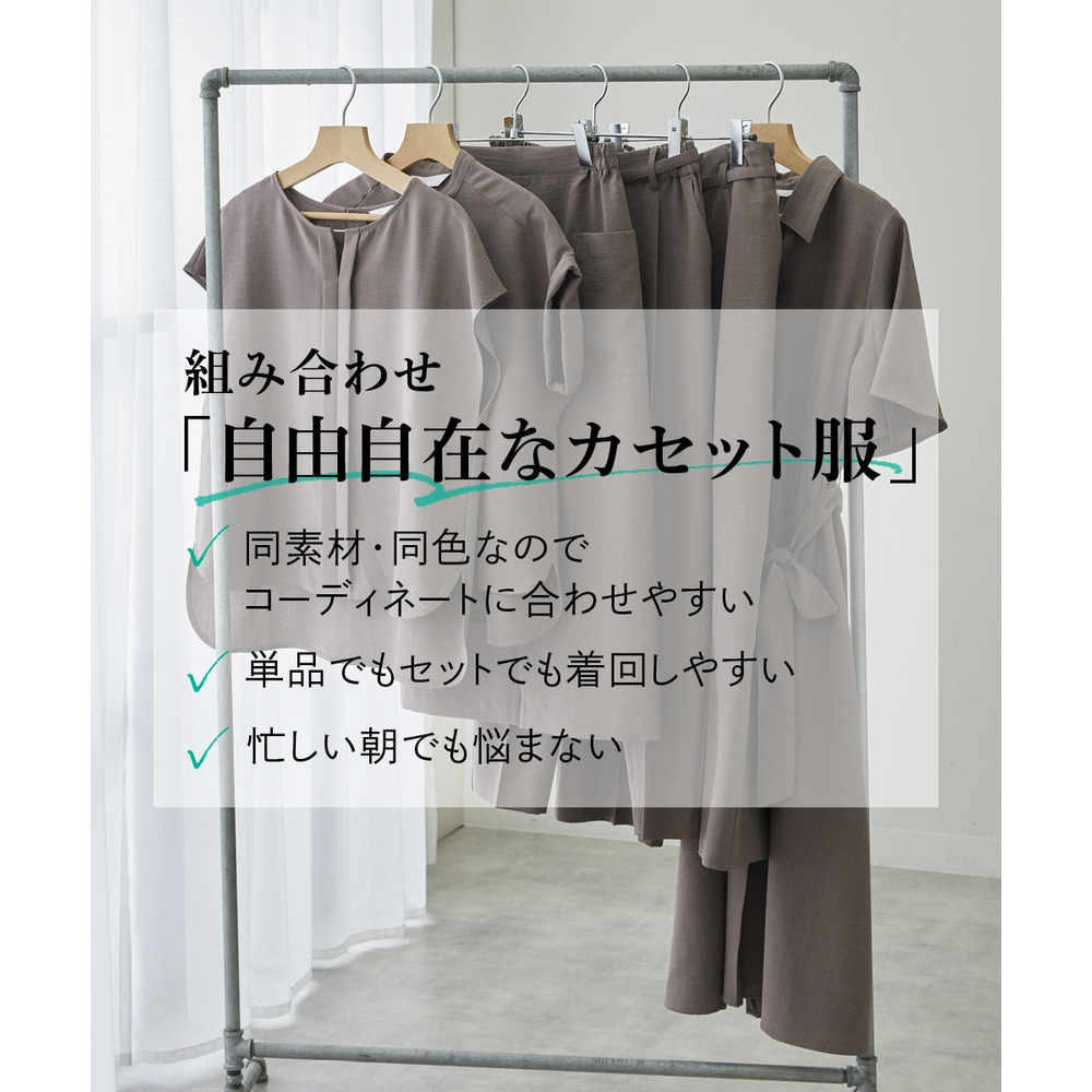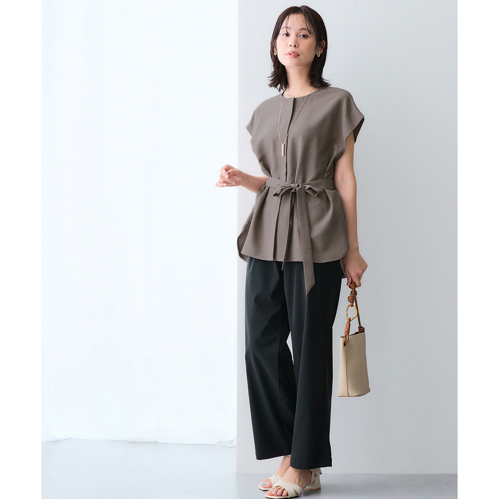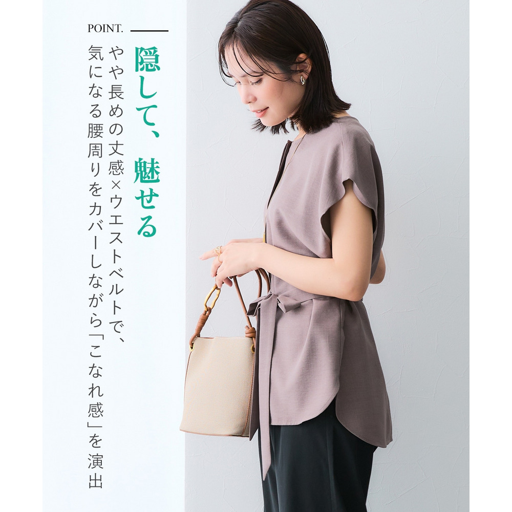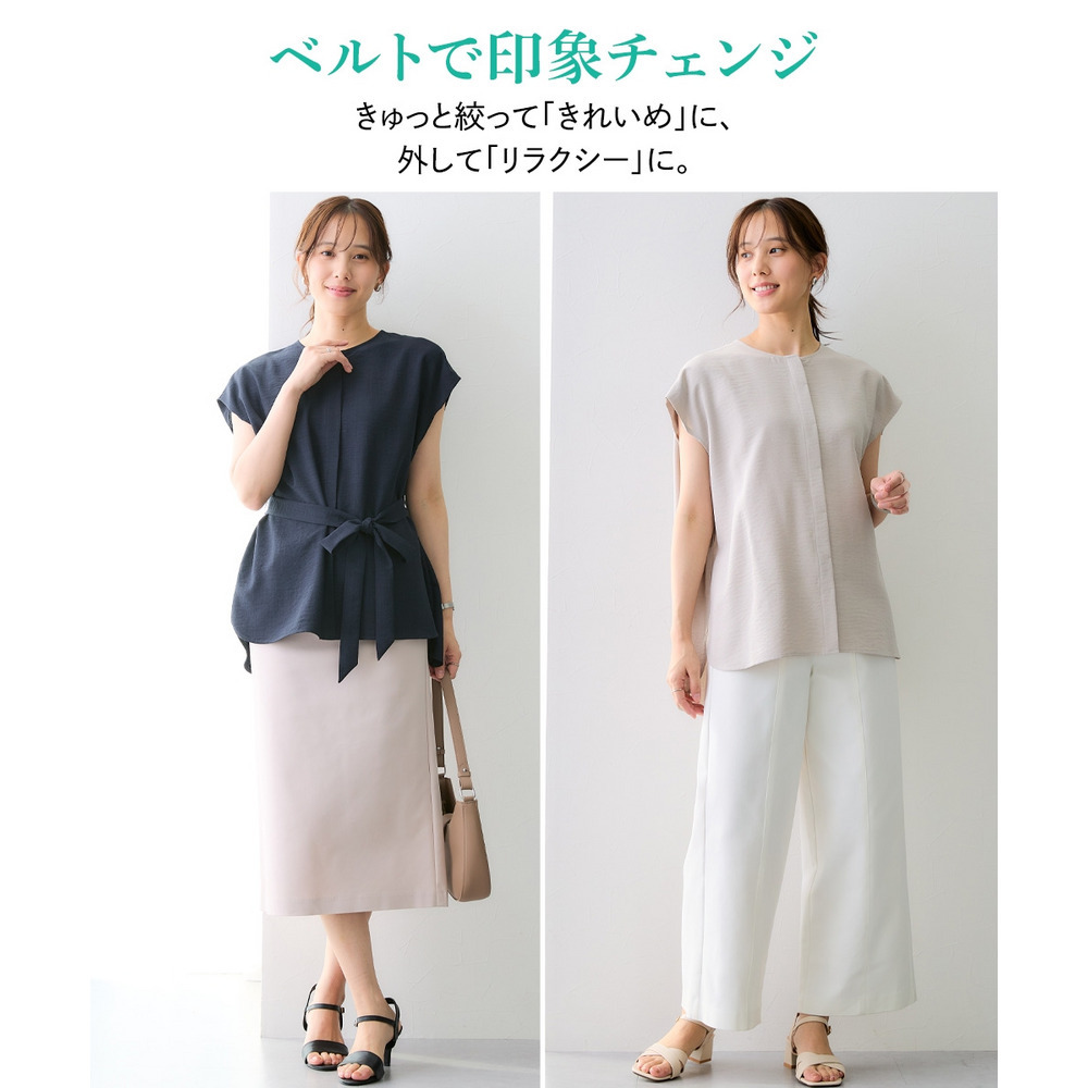 共布のウエストベルトがアクセントになり、着るだけでメリハリのあるシルエットが完成します。