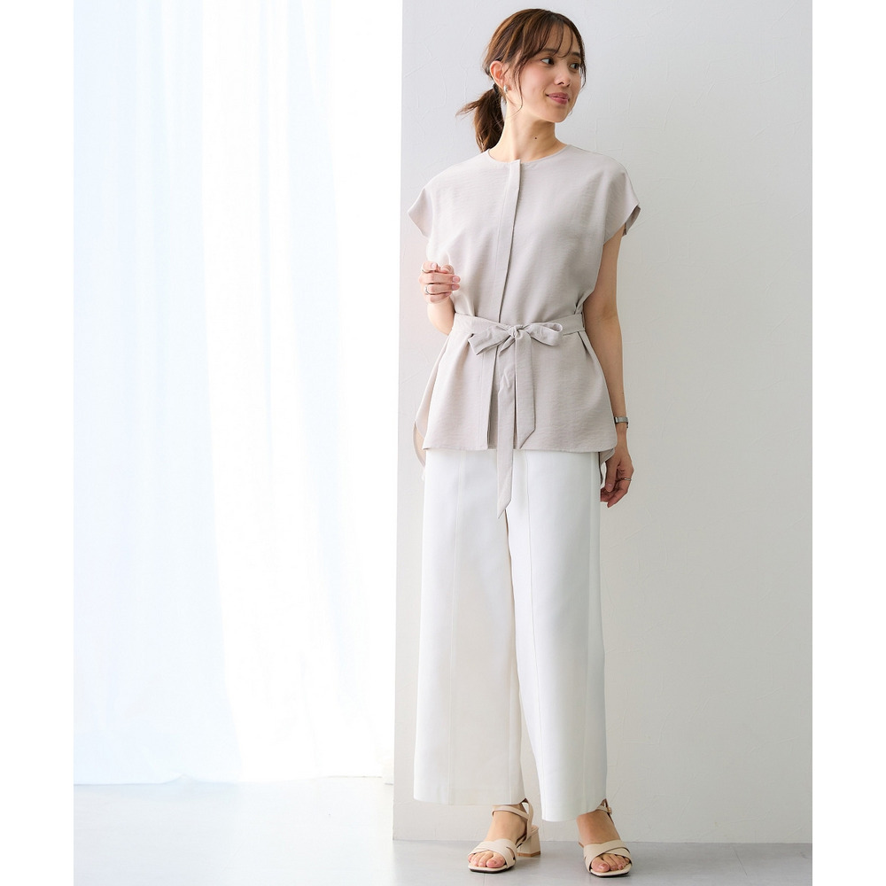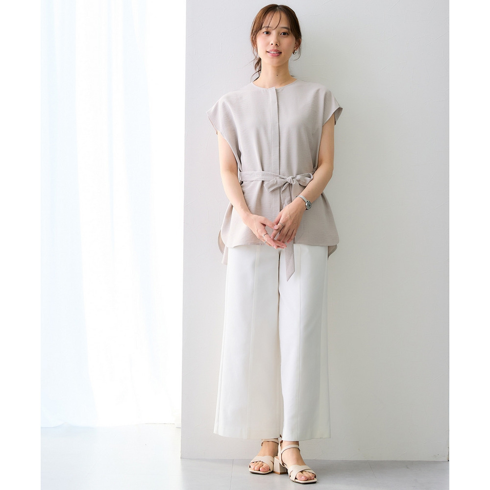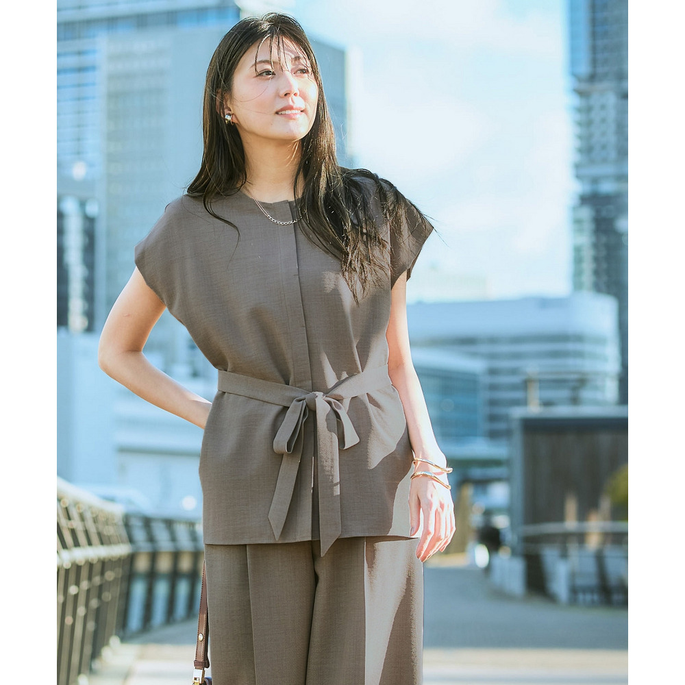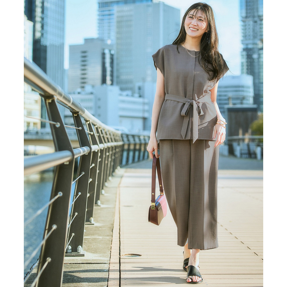 共布のウエストベルトがアクセントになり、着るだけでメリハリのあるシルエットが完成します。