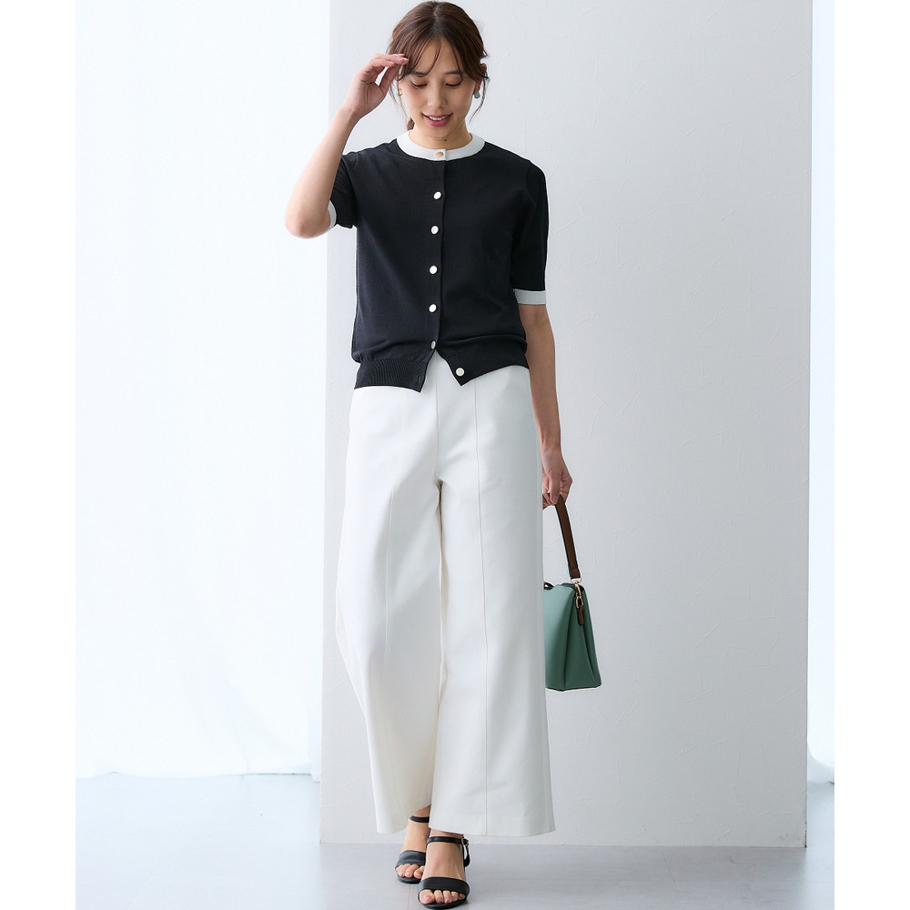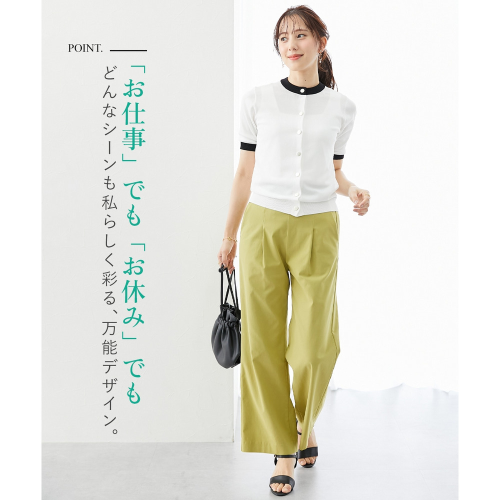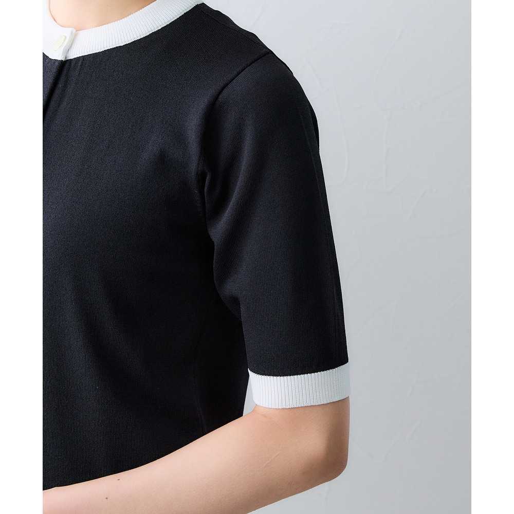 襟元と袖口に施された配色ラインがアクセントとなり、一枚で着映えする上品なデザインです。