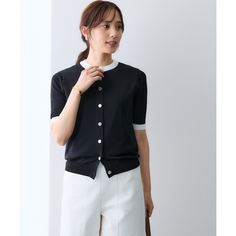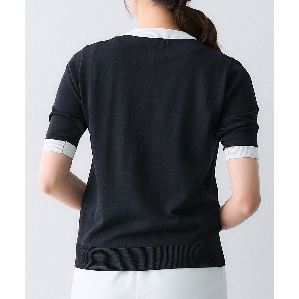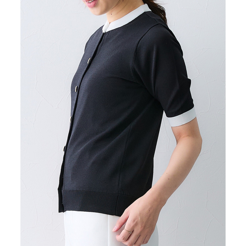 • 【ひんやり接触冷感】5分袖配色ニットカーディガン(UVカット・毛玉になりにくい・遮熱) 大きいサイズ5
