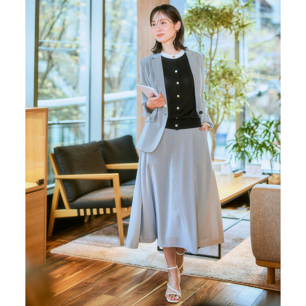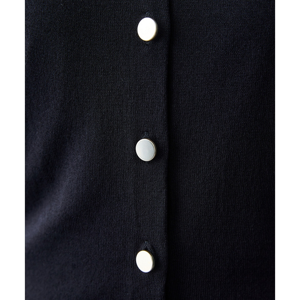 メタルボタン仕様: フロントに並ぶゴールド調のボタンが、クラス感のある華やかさをプラスします。
