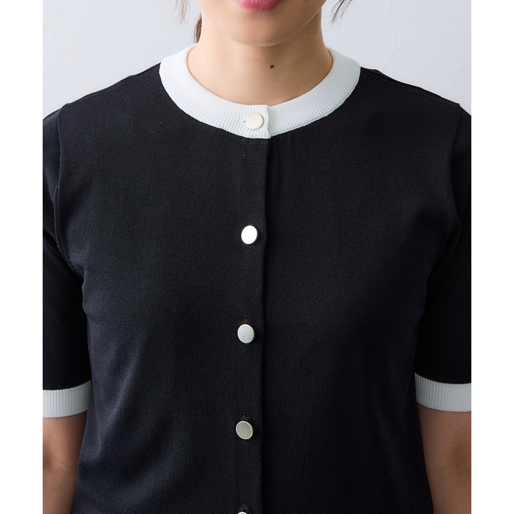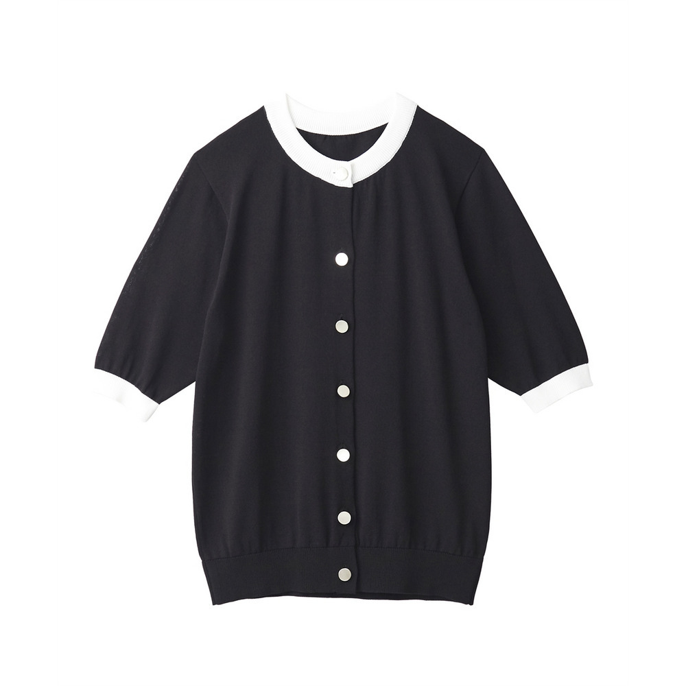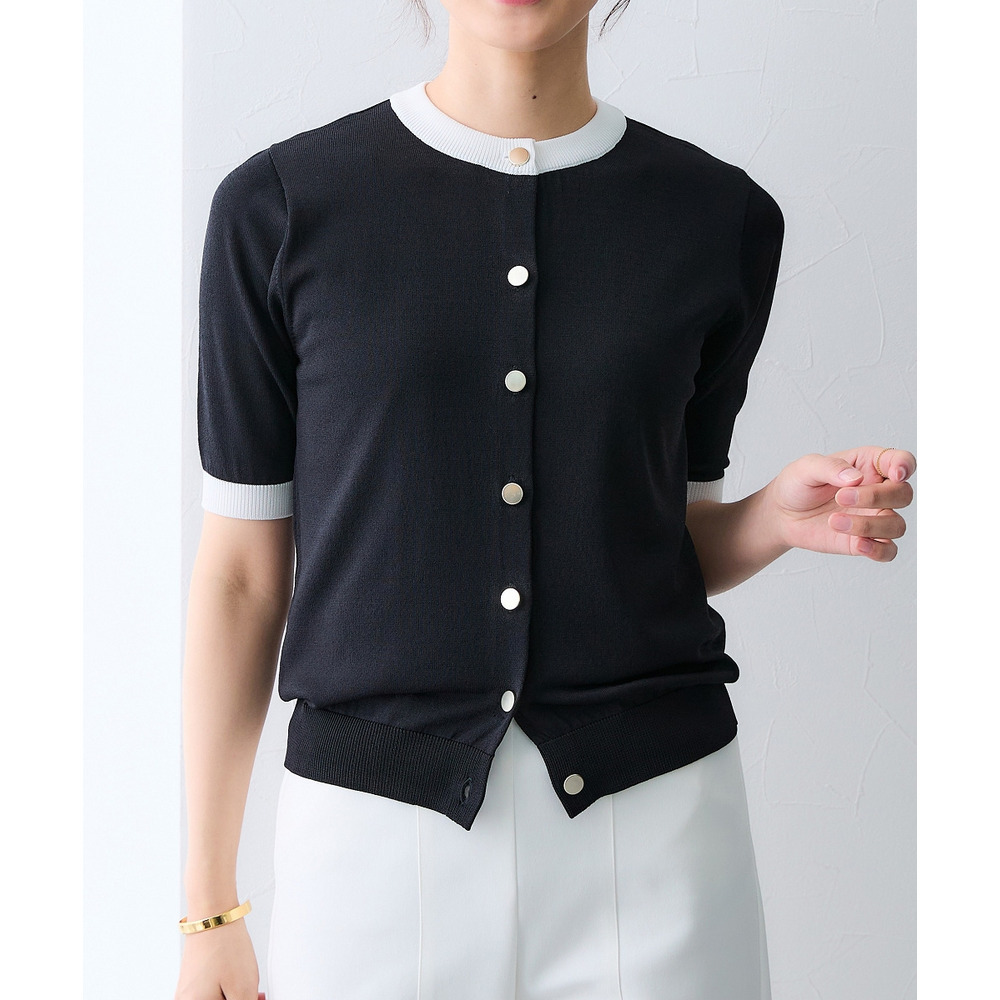 • 【ひんやり接触冷感】5分袖配色ニットカーディガン(UVカット・毛玉になりにくい・遮熱) 大きいサイズ4