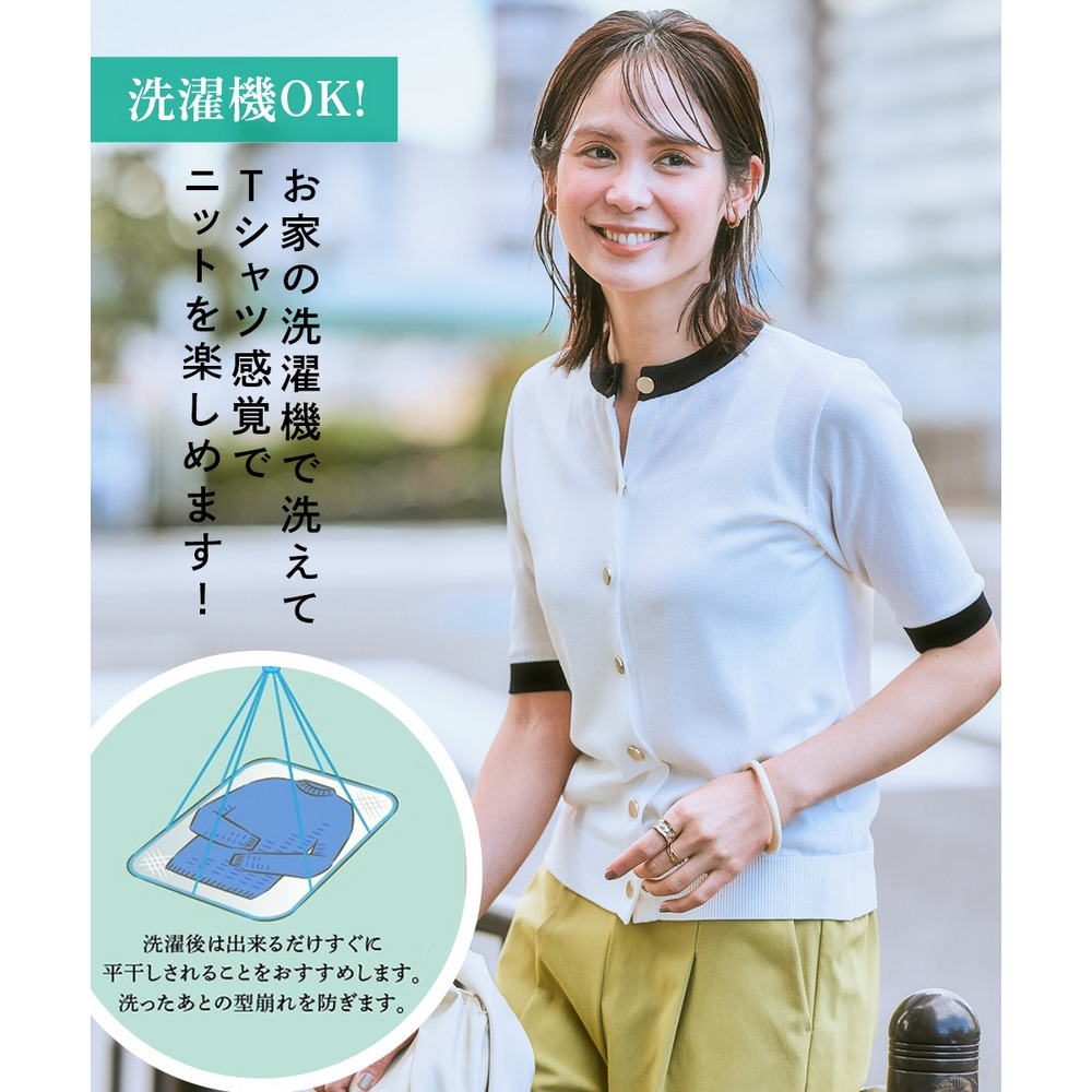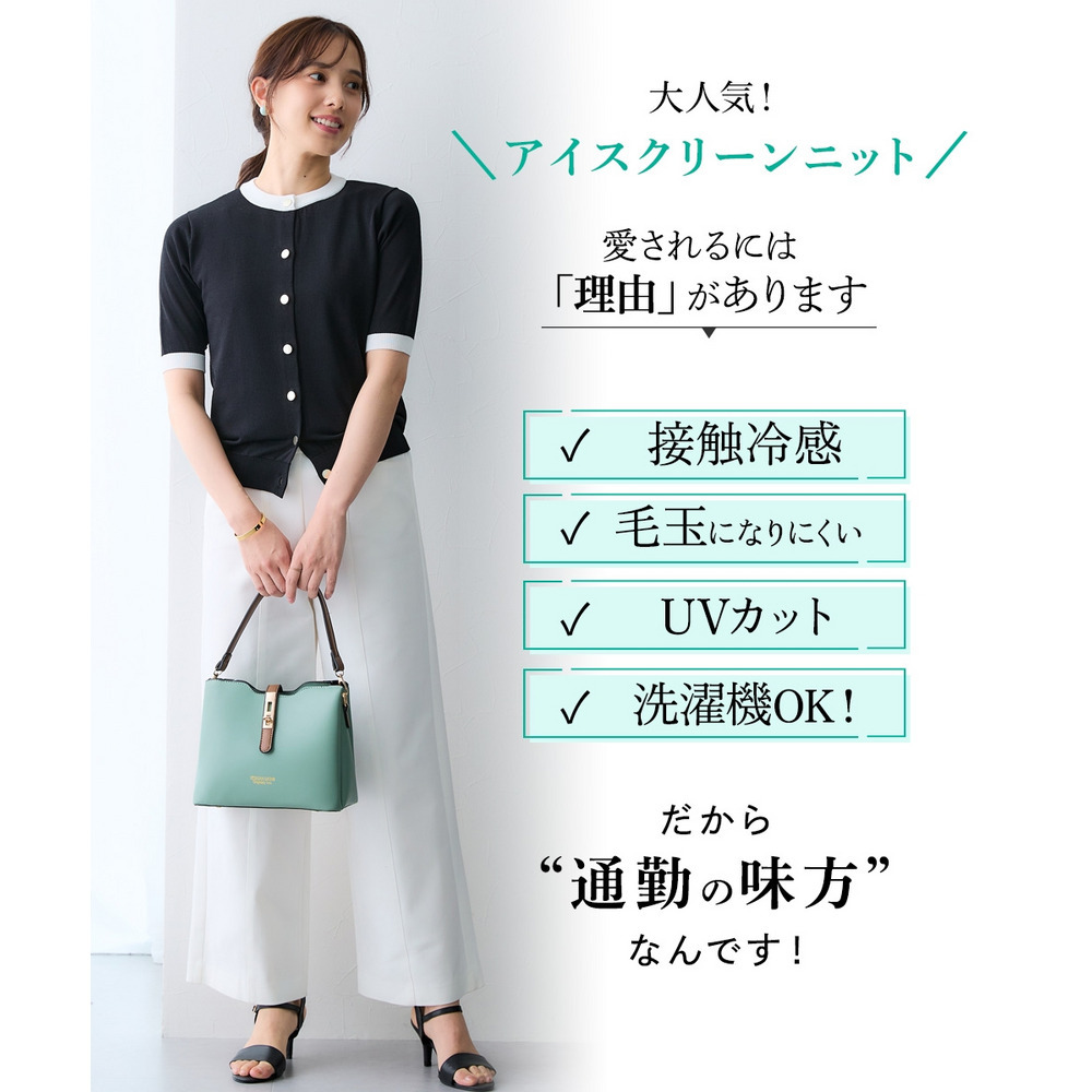 • 【ひんやり接触冷感】5分袖配色ニットカーディガン(UVカット・毛玉になりにくい・遮熱) 大きいサイズ21