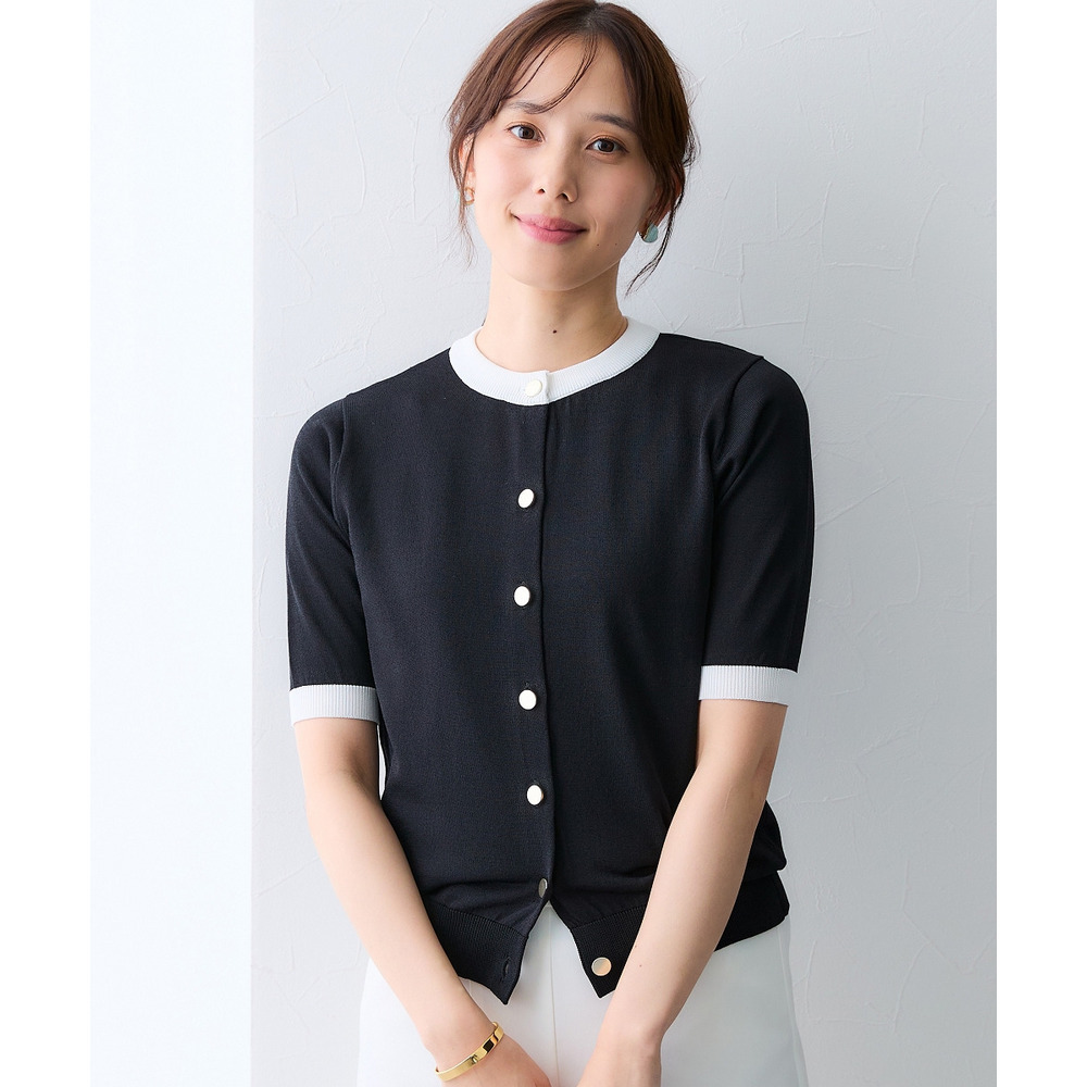 • 【ひんやり接触冷感】5分袖配色ニットカーディガン(UVカット・毛玉になりにくい・遮熱) 大きいサイズ1