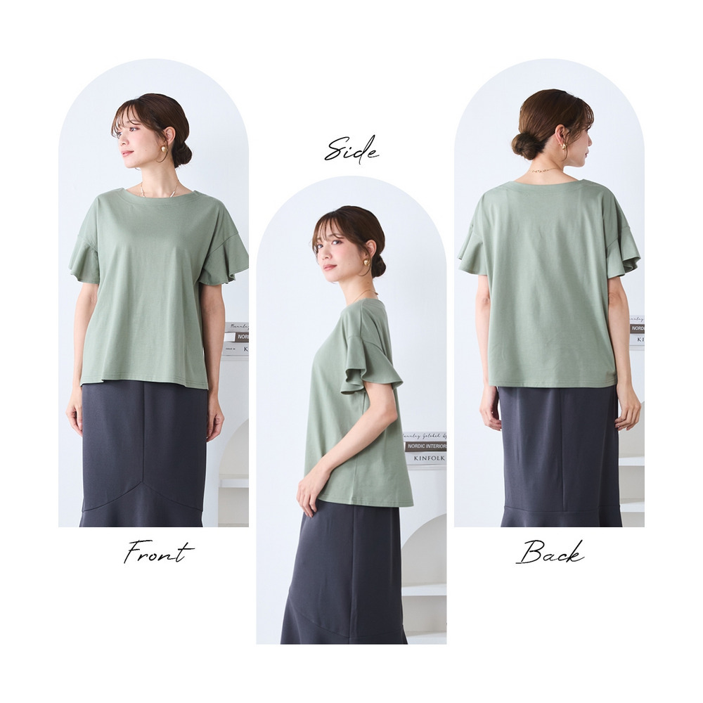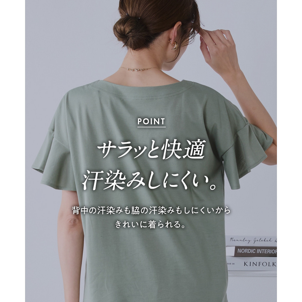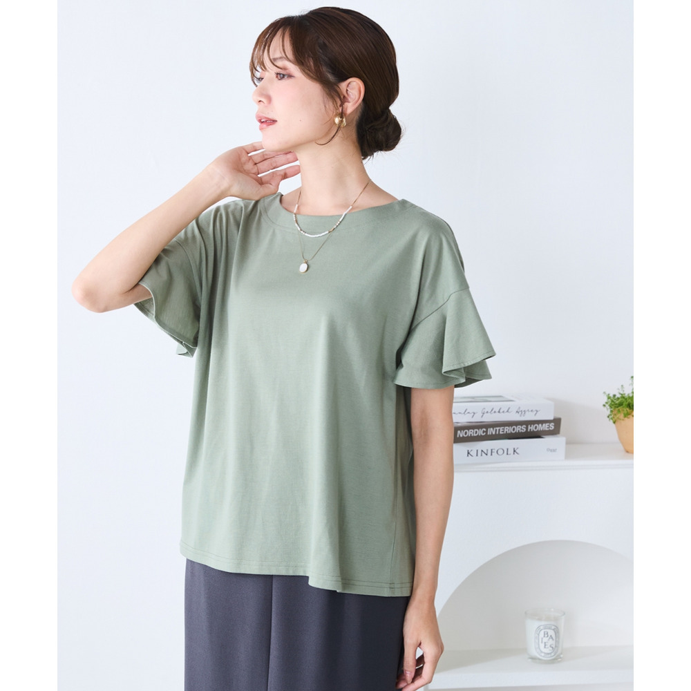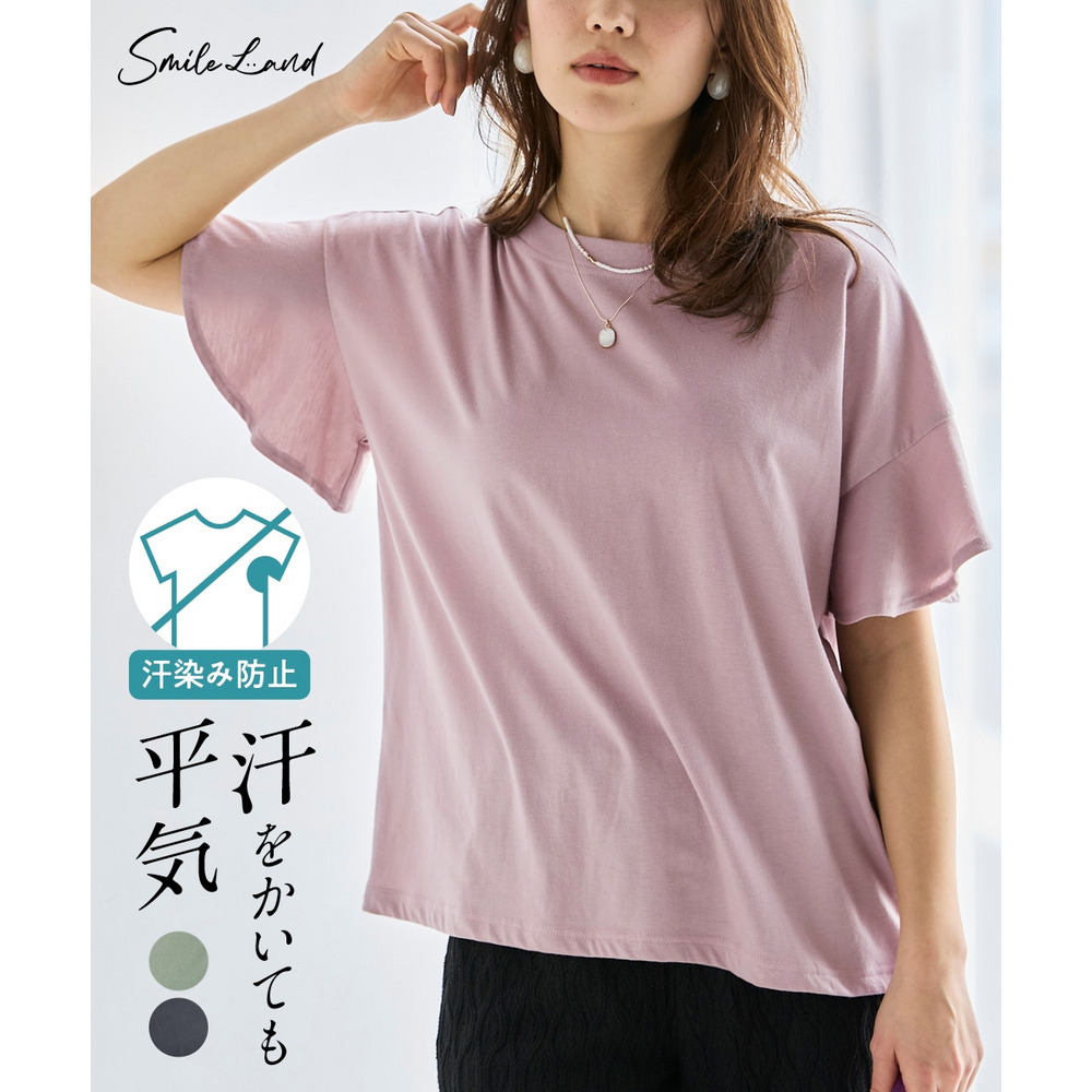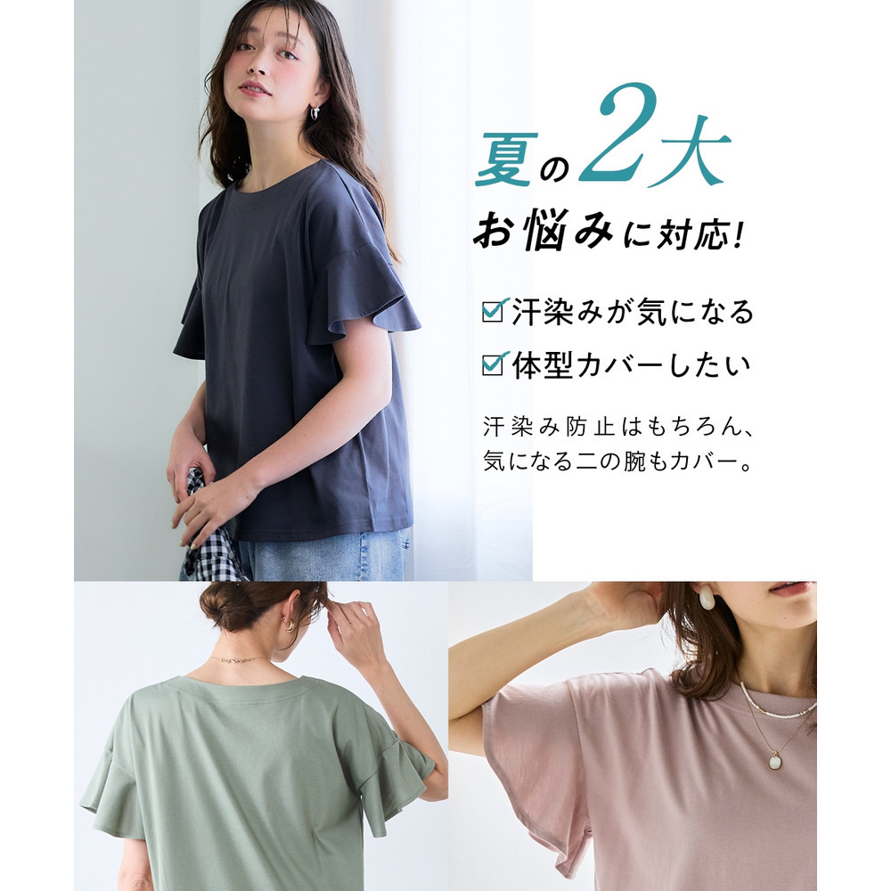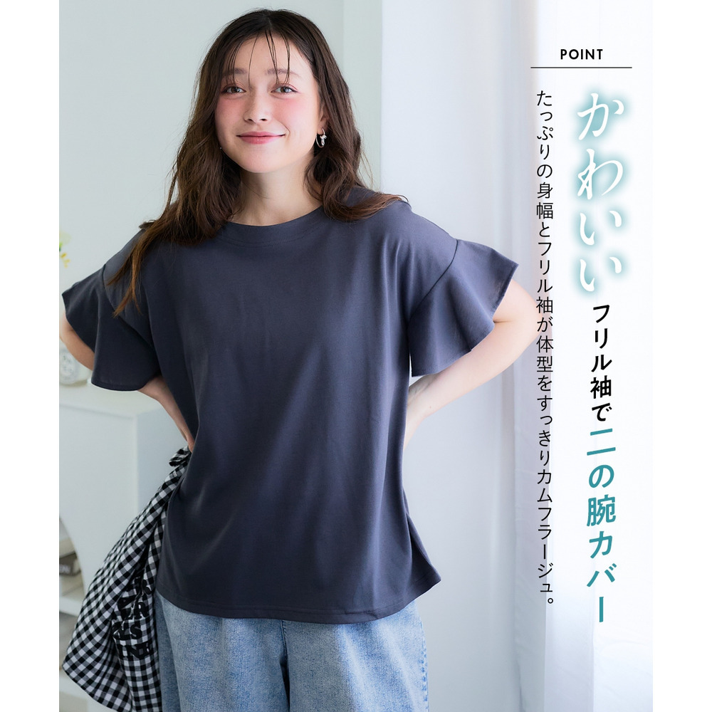 【汗染みしにくい】フリル袖プルオーバー 大きいサイズ
