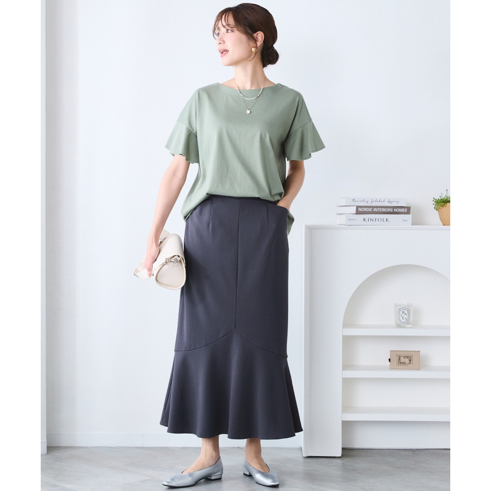 最大のポイントは、二の腕をすっきりと見せてくれるボリューム感のあるフリル袖。
