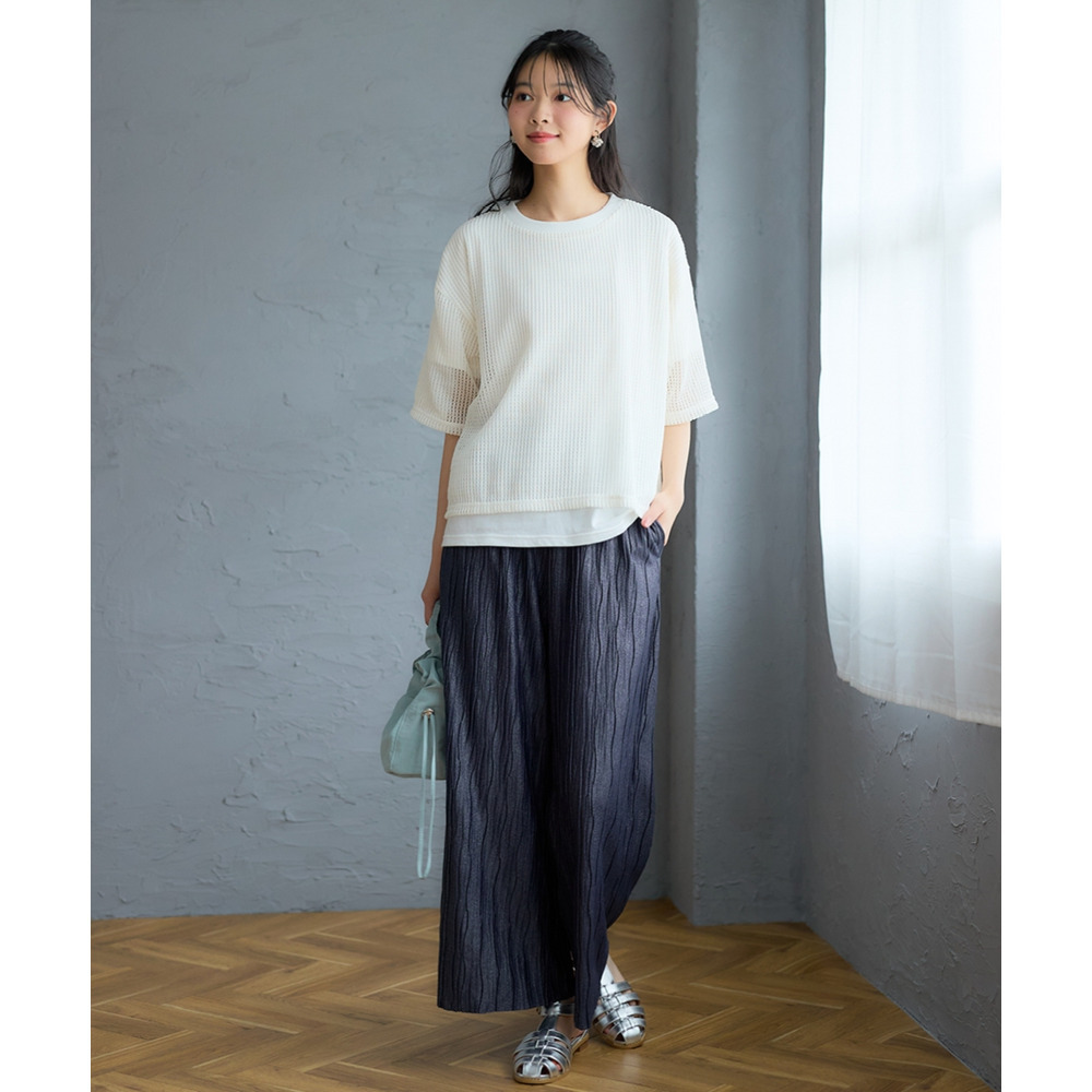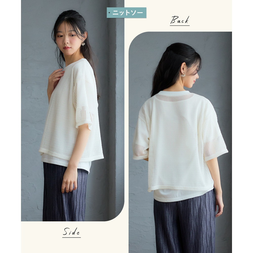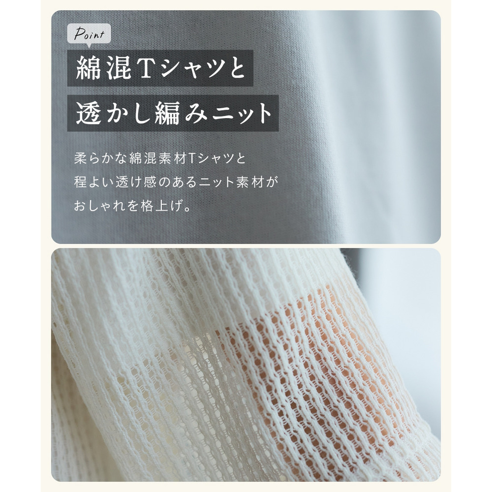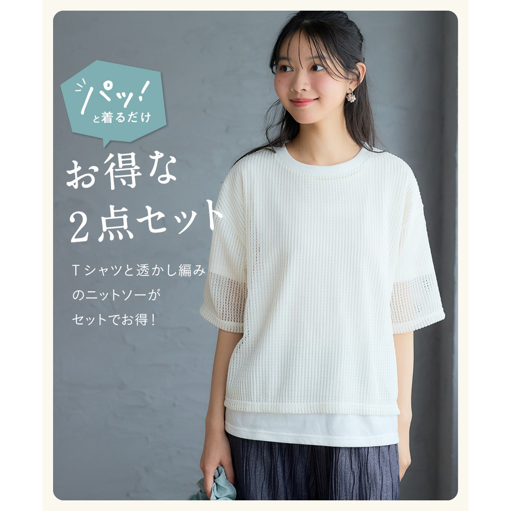 毎日の服選びに迷わない、透かし編みニットソーと5分袖Tシャツの贅沢な2点セットがpattokから登場しました。
