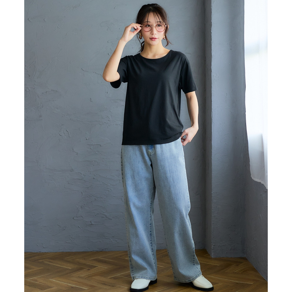 5分袖Tシャツはシンプルなデニムやチノパンと合わせるだけで、清潔感のあるデイリーコーデとして活躍します。