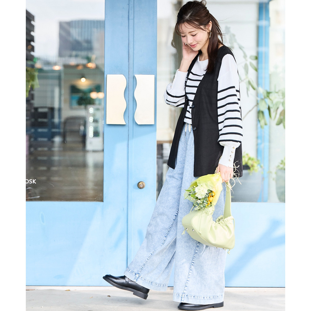 足元にはローファーやフラットパンプスを合わせて、程よくきれいめな要素をプラスするのがSmile Land流。