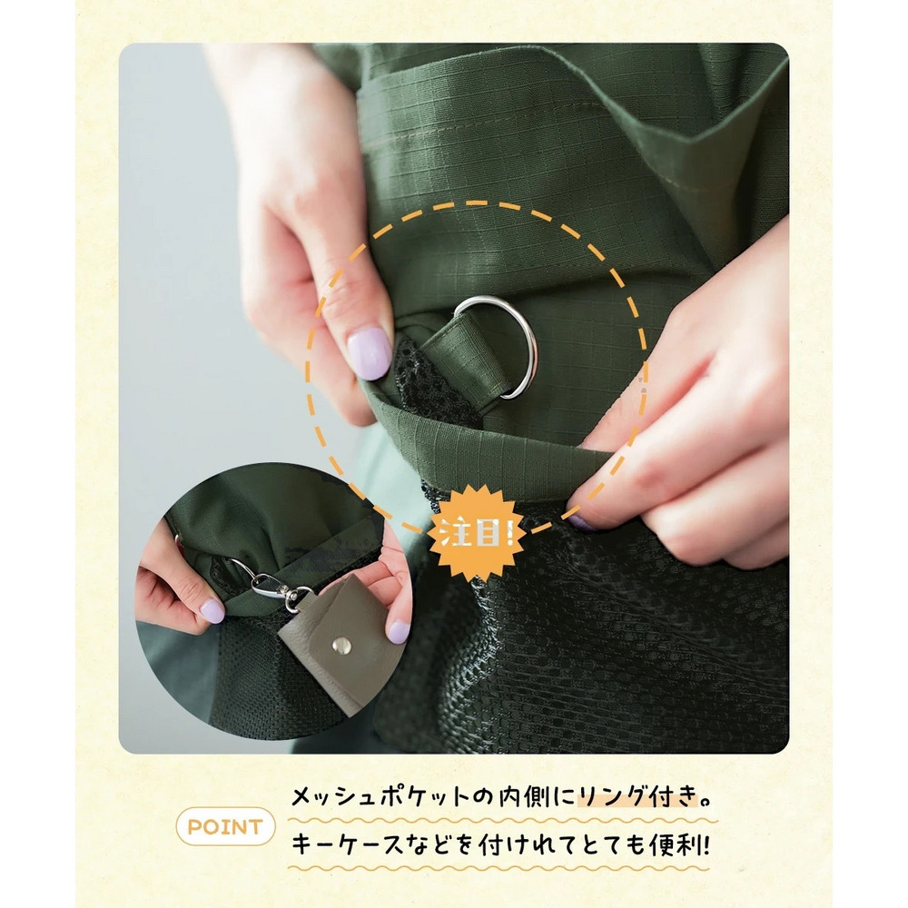 メッシュポケットやコインポケットなどシーンに合わせて使い分けてもいいですね!
