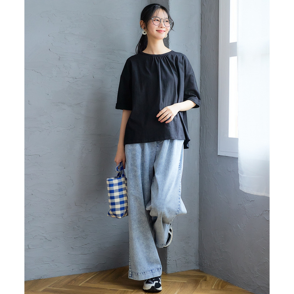 「楽して可愛い」を叶えるなら、すっきりとしたテーパードパンツやデニムを合わせた大人カジュアルなスタイルがおすすめです。
