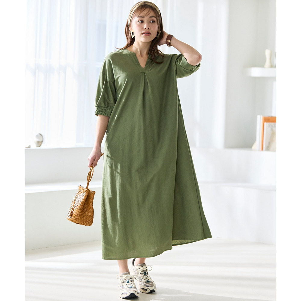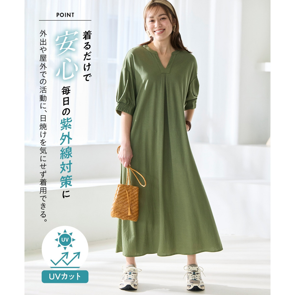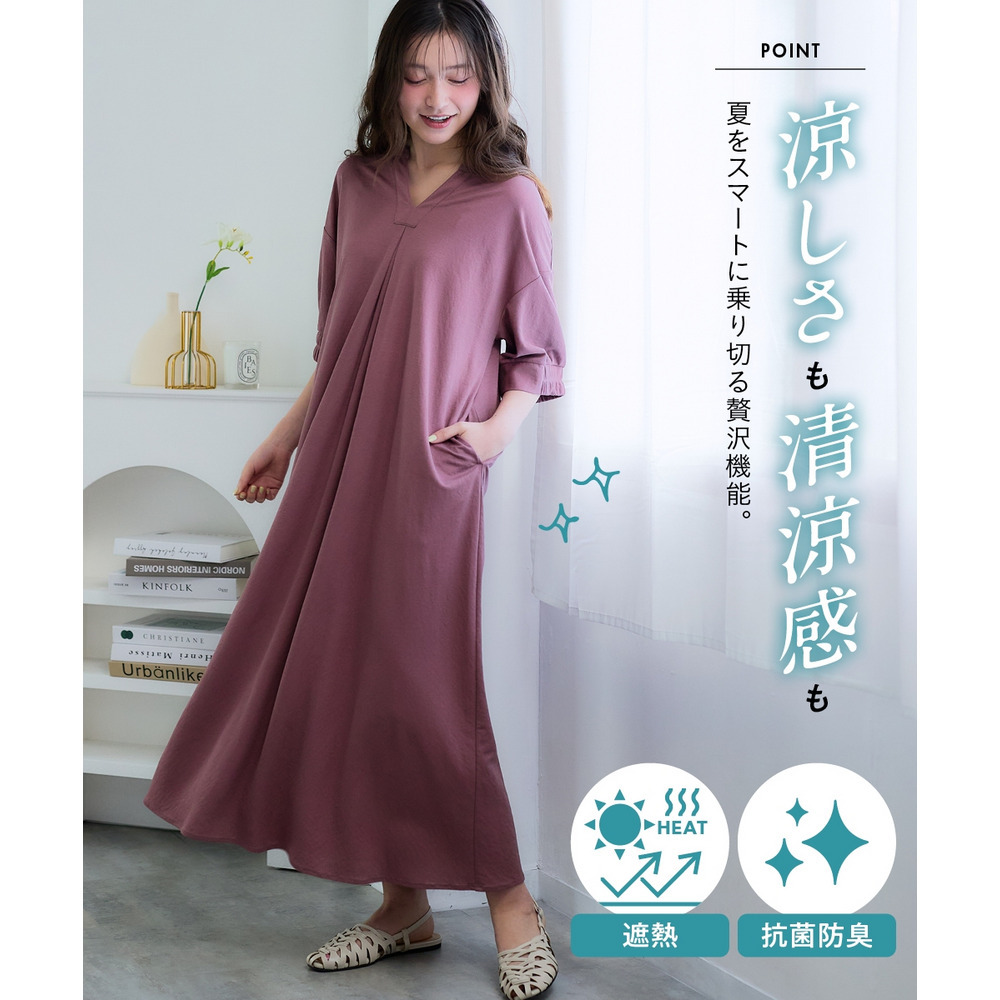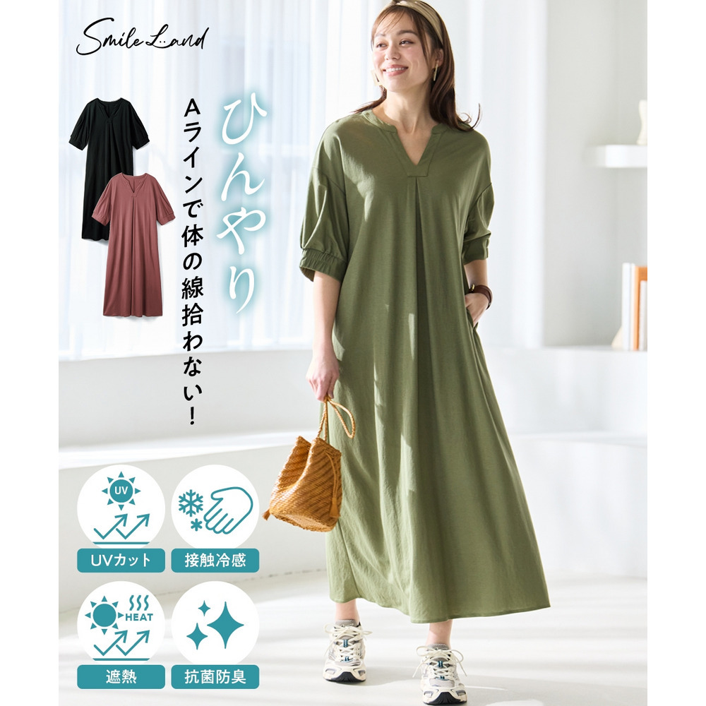 美ラクRUタッチキーネックワンピース(接触冷感・抗菌防臭・UVカット・遮熱) 大きいサイズ