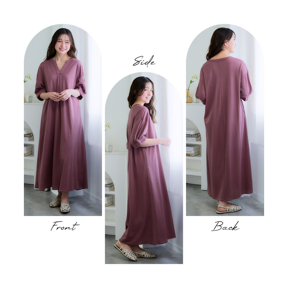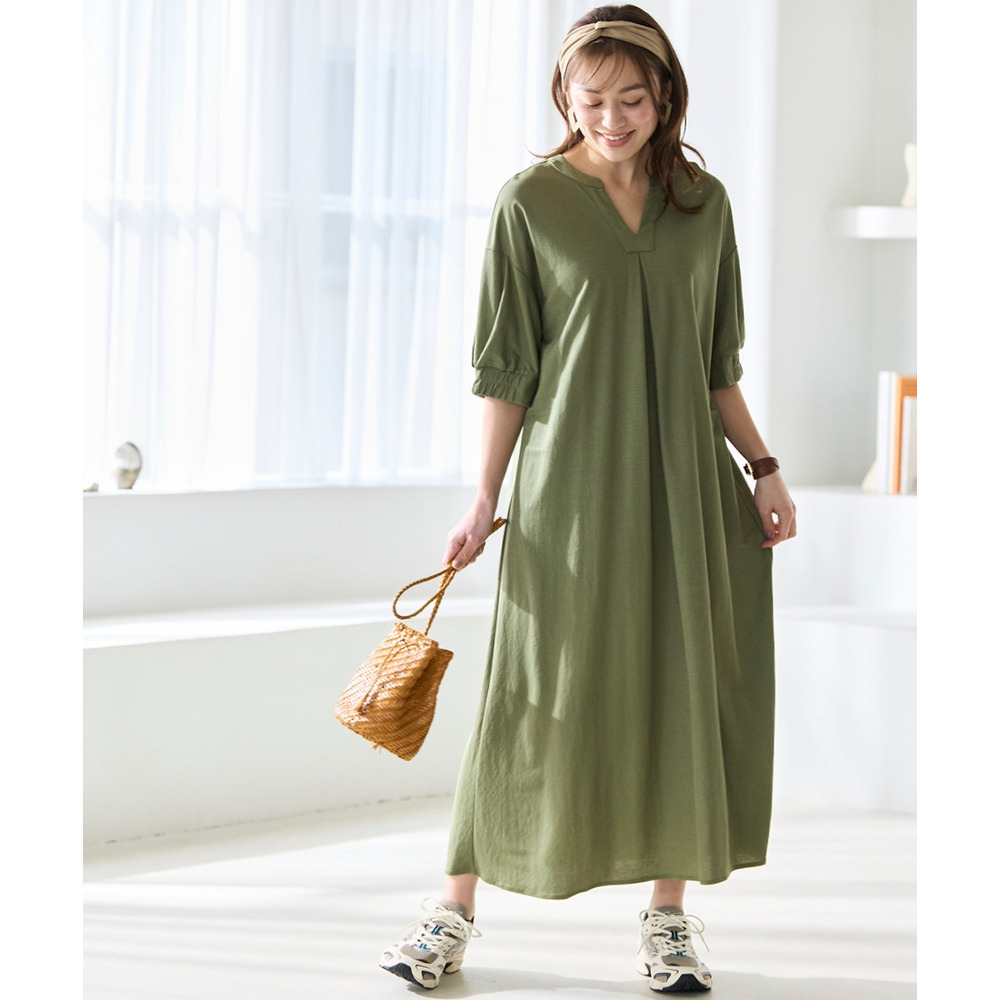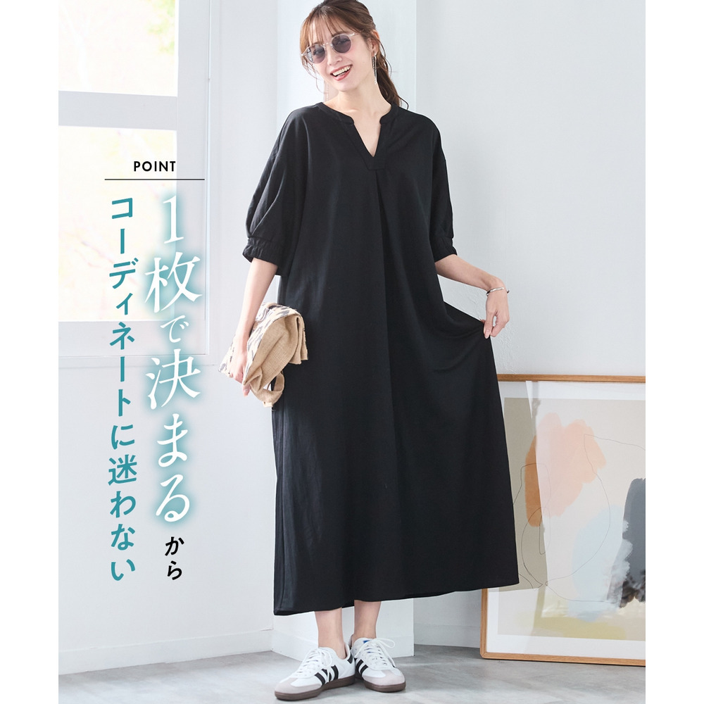 そんな願いを叶える美ラクRUタッチキーネックワンピースが登場しました。