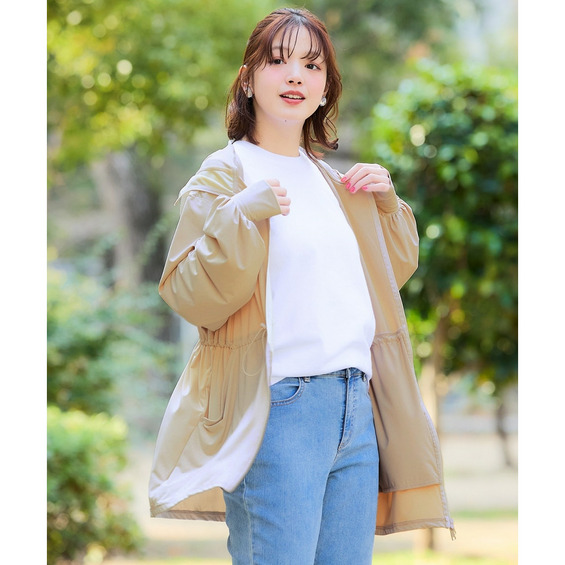 紐を絞ればメリハリのある女性らしいシルエットに、緩めればリラックス感のあるゆったりとした羽織りに変化し、その日の気分や服装に合わせて印象を変えられます。