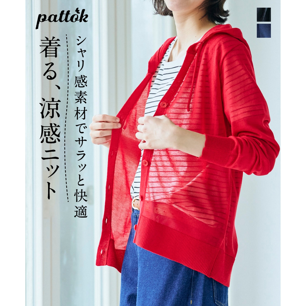 • シャリ美シアーニットフードカーディガン 大きいサイズ10