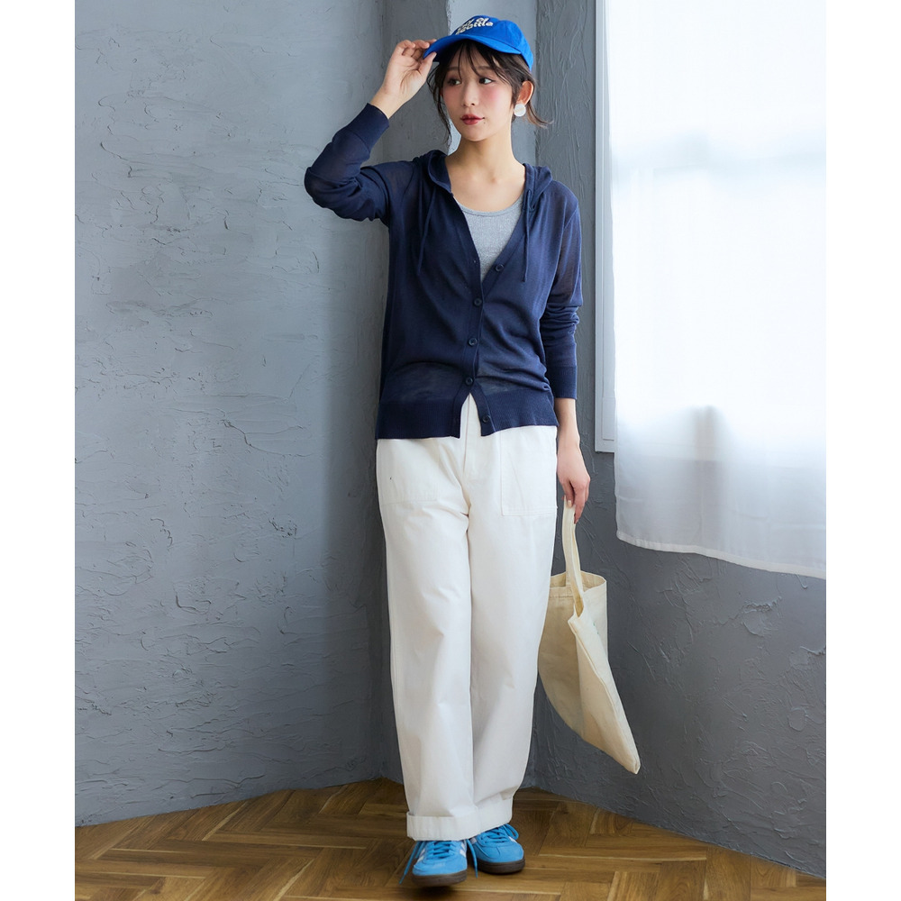きれいめになりがちなシアーニットを、あえてパーカータイプにすることで、デイリーに使いやすい親しみやすさを加えました。