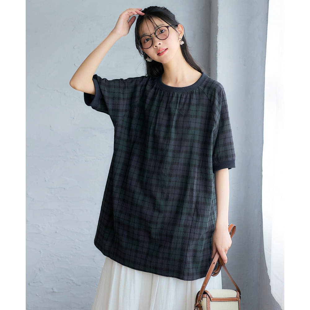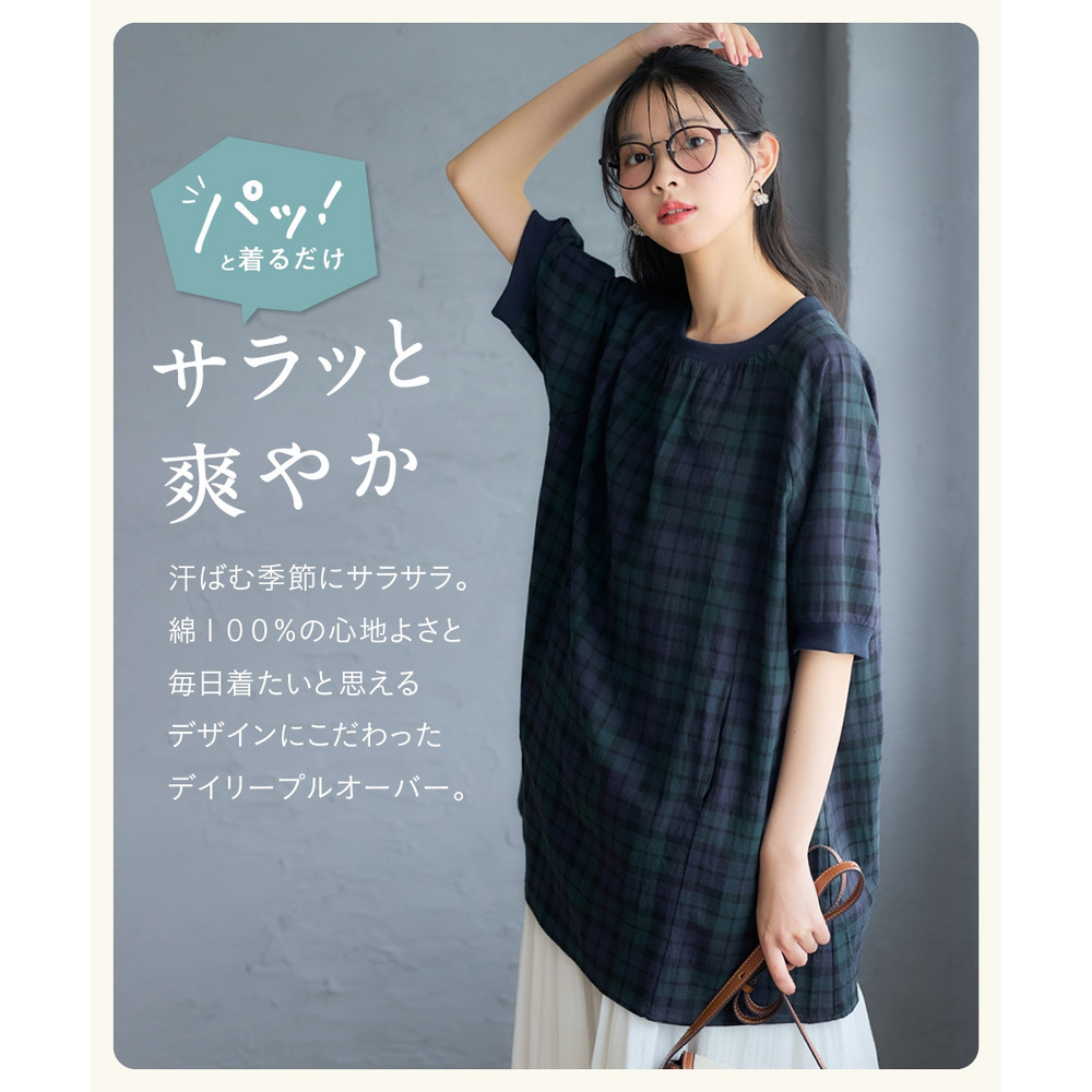 ゆったり心地よいシルエットと計算された体型カバー力が、忙しい毎日に自信をくれるラグランスリーブプルオーバーチュニック。