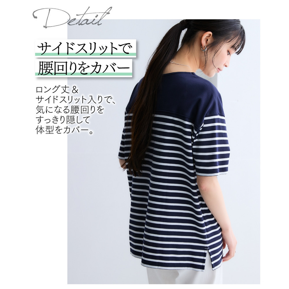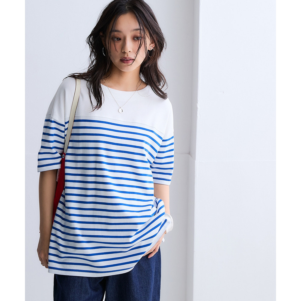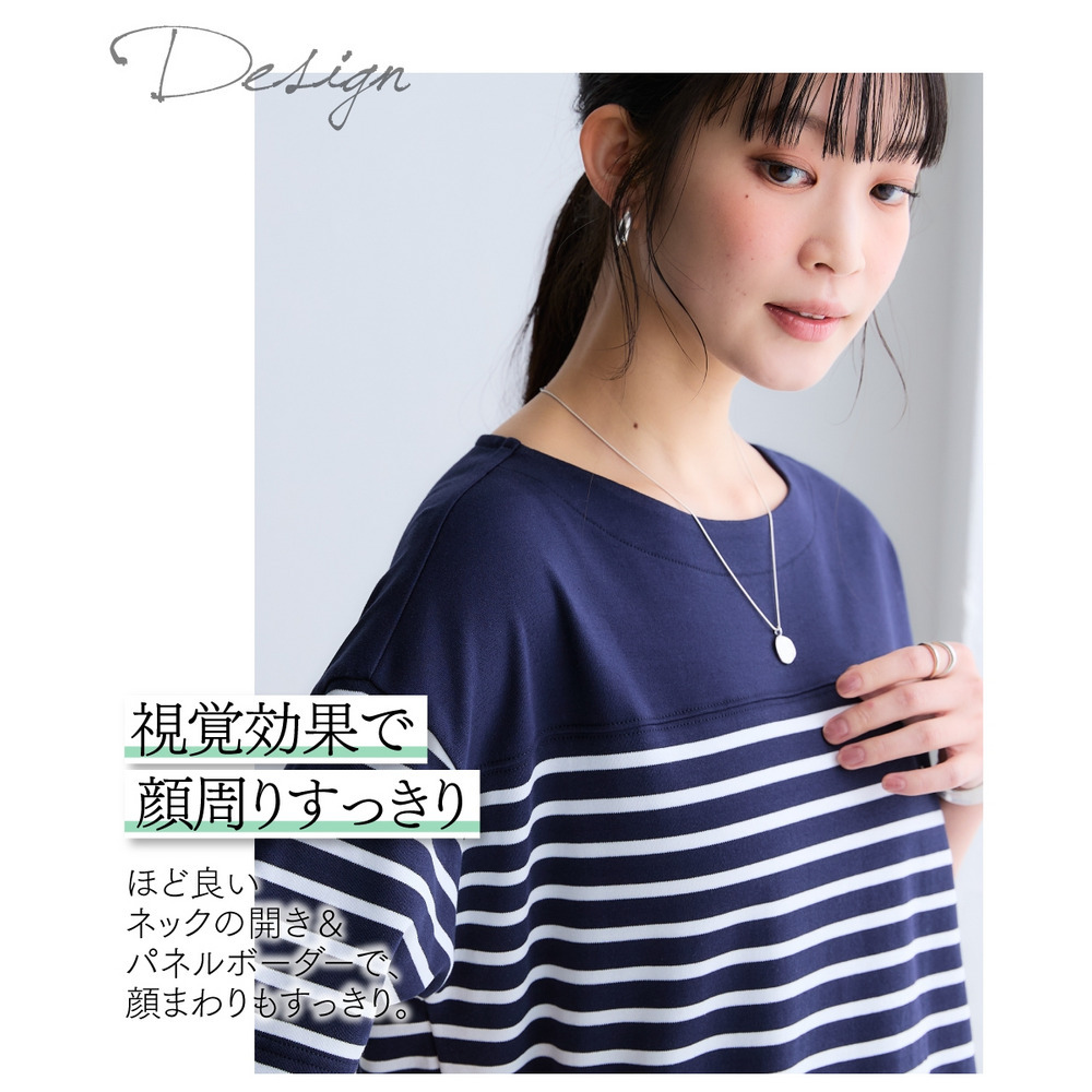 綿100%スムースパネル風ボーダー5分袖プルオーバー 大きいサイズ