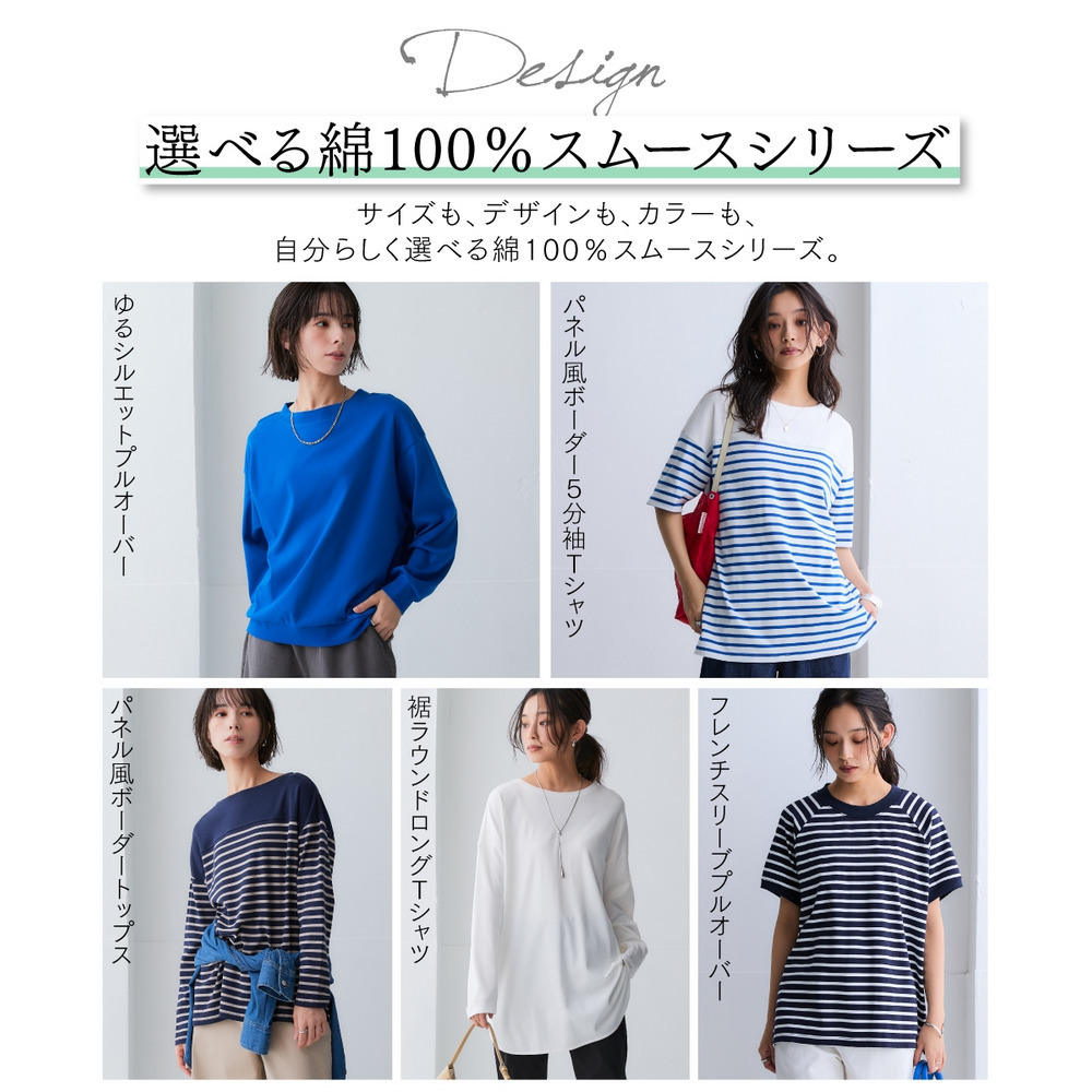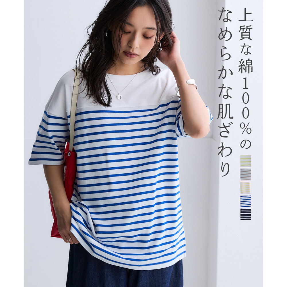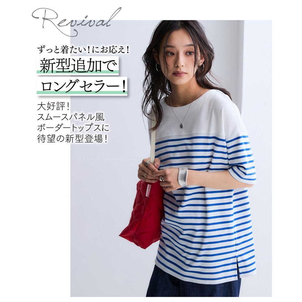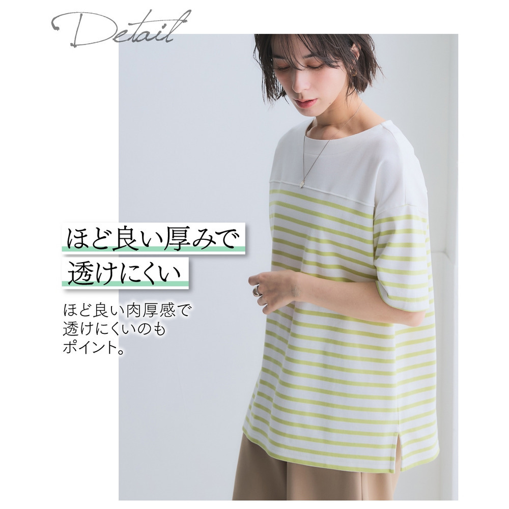綿100%スムースパネル風ボーダー5分袖プルオーバー 大きいサイズ