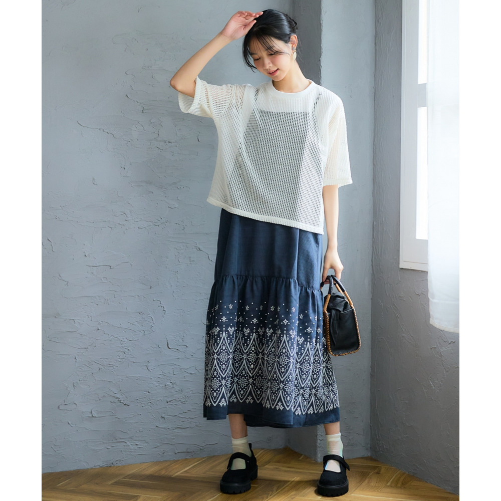 素材 品質=綿50%・ポリエステル50% 柄の出方が多少異なる場合があります。 "透け感:やや透ける ※色によって透け感が異なる場合があります。淡色カラーはベージュ系インナー着用をおすすめします。 "伸縮性:なし 生地の厚み:薄い 光沢感:なし 裏地:なし ポケット:なし 季節:夏 シルエット:普通
