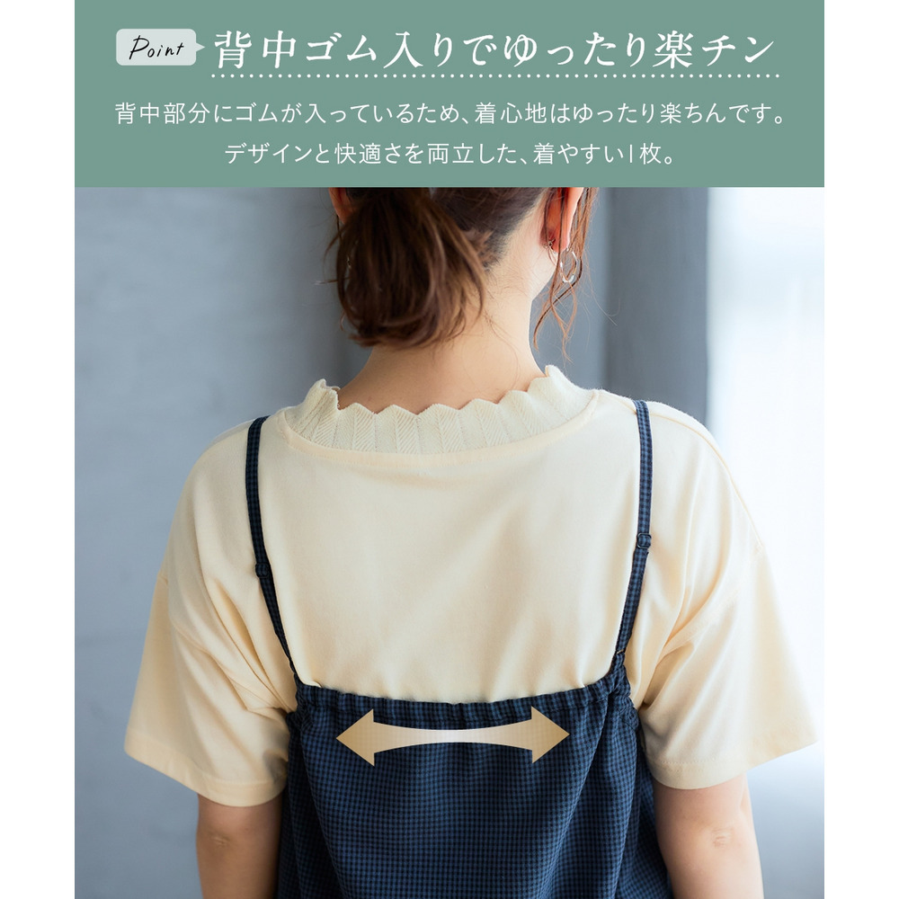 大人に嬉しい工夫として、背中部分にゴムを入れることで、フロントはスッキリとした見た目を保ちつつ、ゆったりとしたリラクシーな着心地を実現しました。