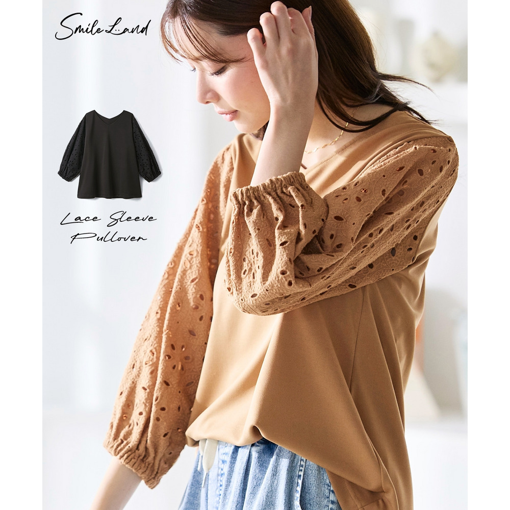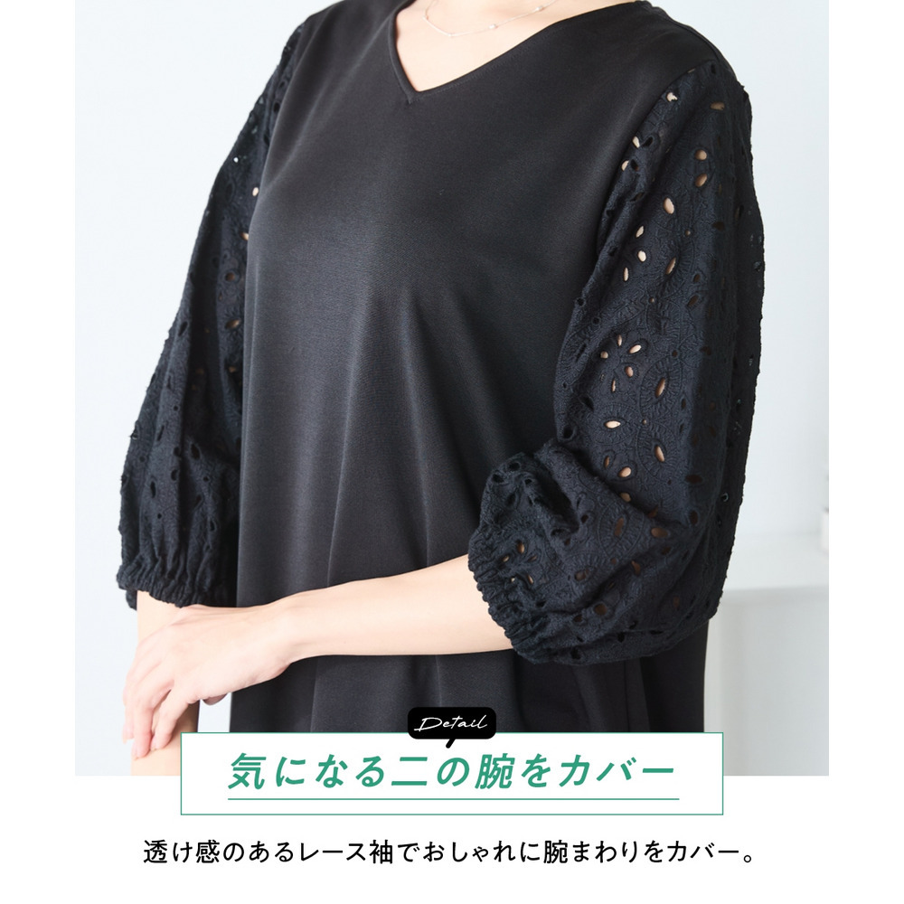 袖レースカットソープルオーバー 大きいサイズ