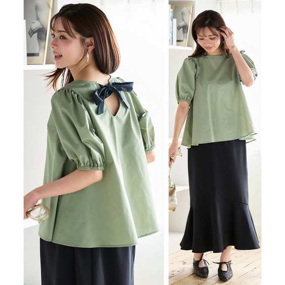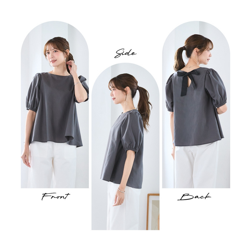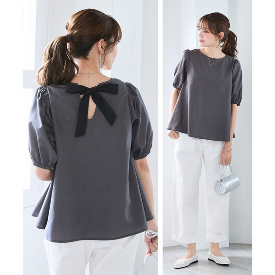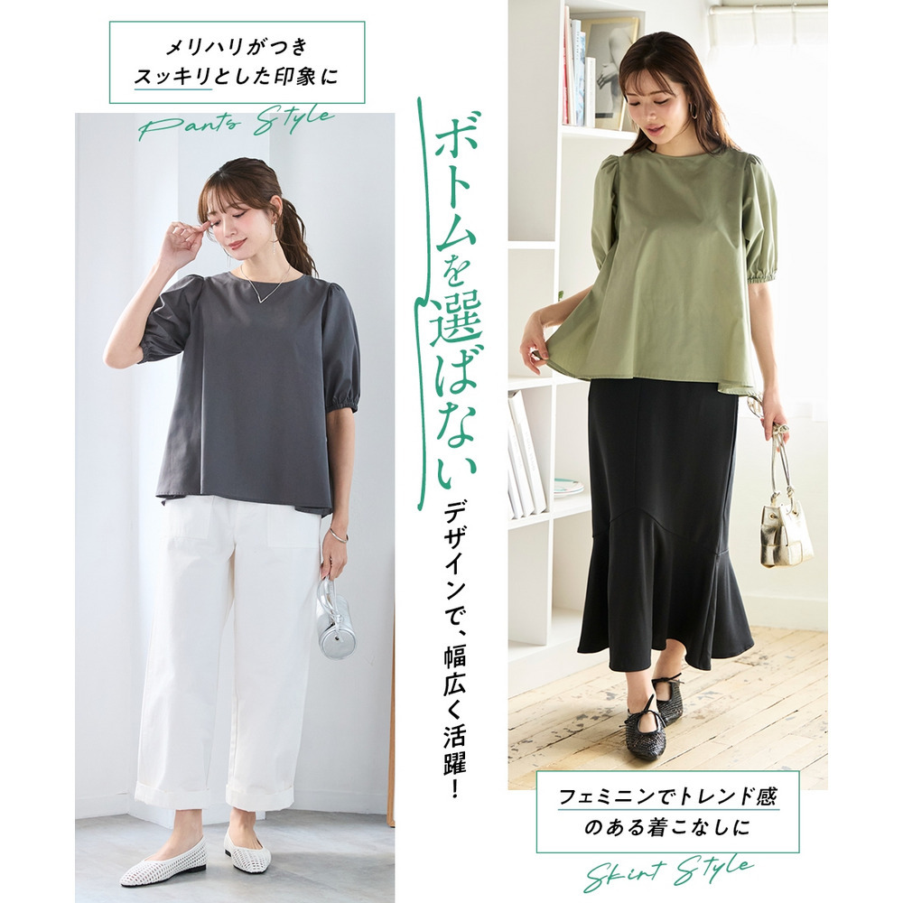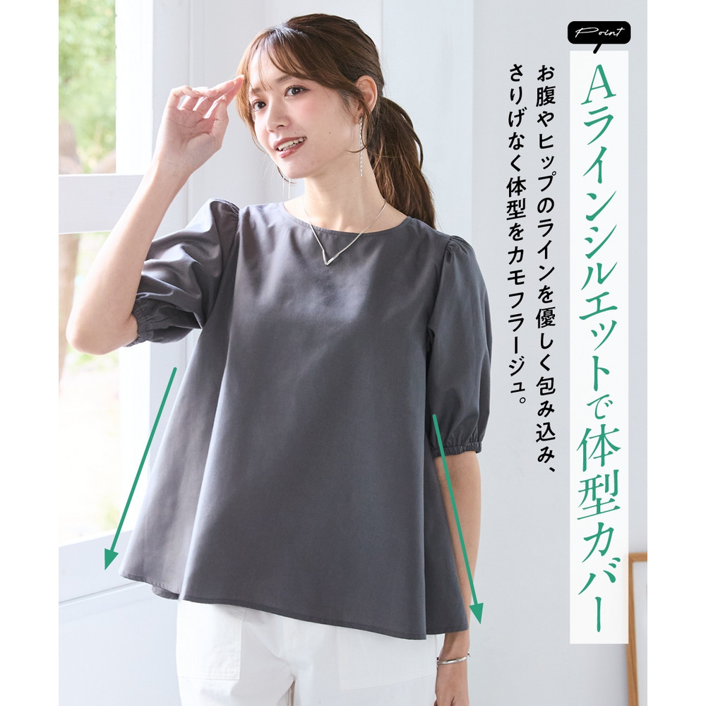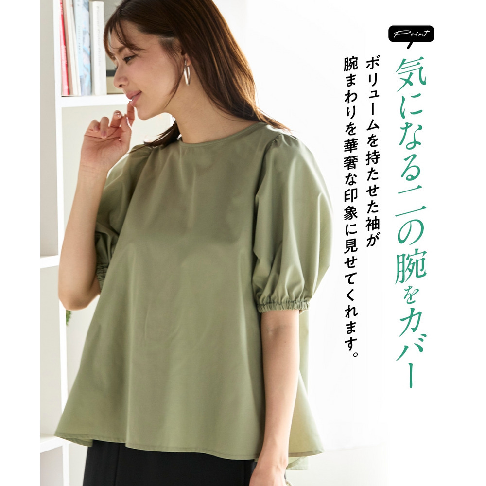 さらに、ふんわりと膨らむボリューム袖は、気になる二の腕を丸ごと包み込み、可愛らしくカバーしてくれる頼れる存在。