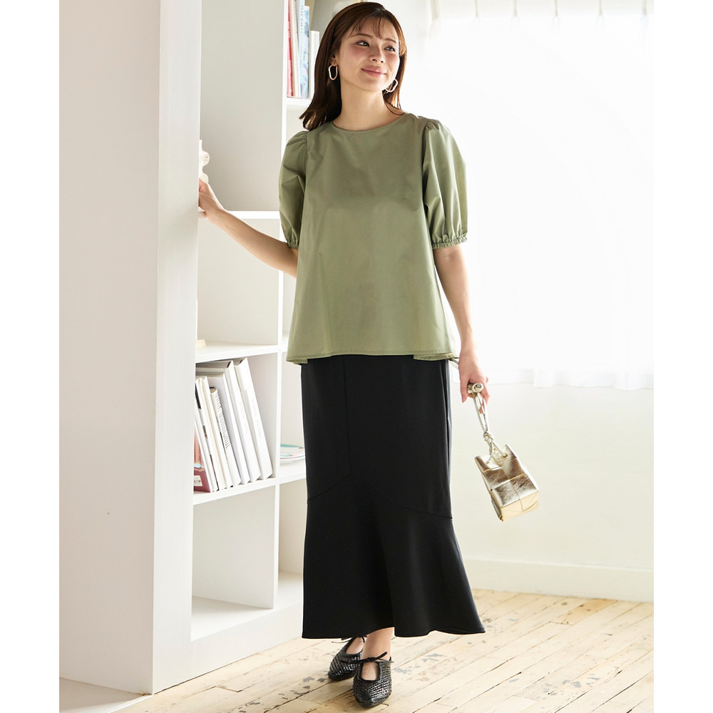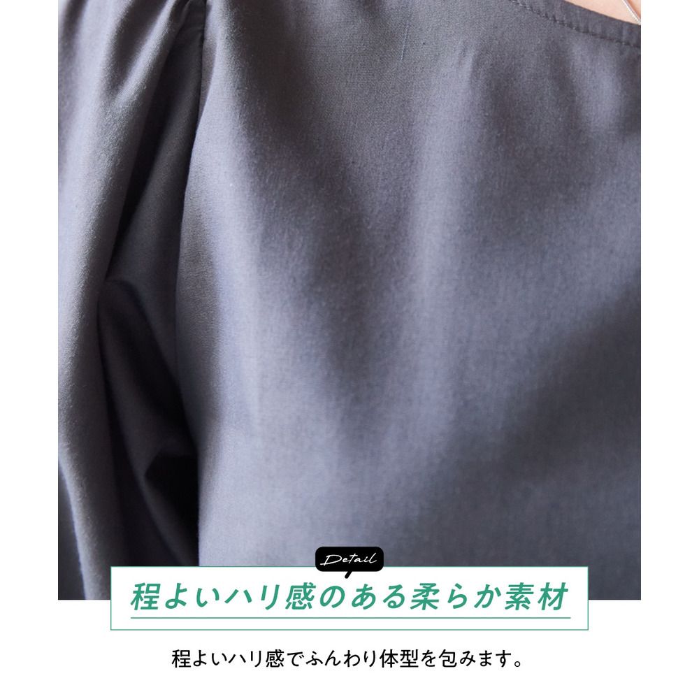この絶妙なハリ感が、ブラウスのふんわりとした立体的なシルエットを美しくキープしてくれま、体のラインを拾いにくいのも特徴です。