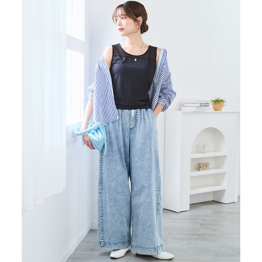 トレンドのシアー素材をヨーク部分にあしらい、顔周りに涼しげな抜け感をプラス。