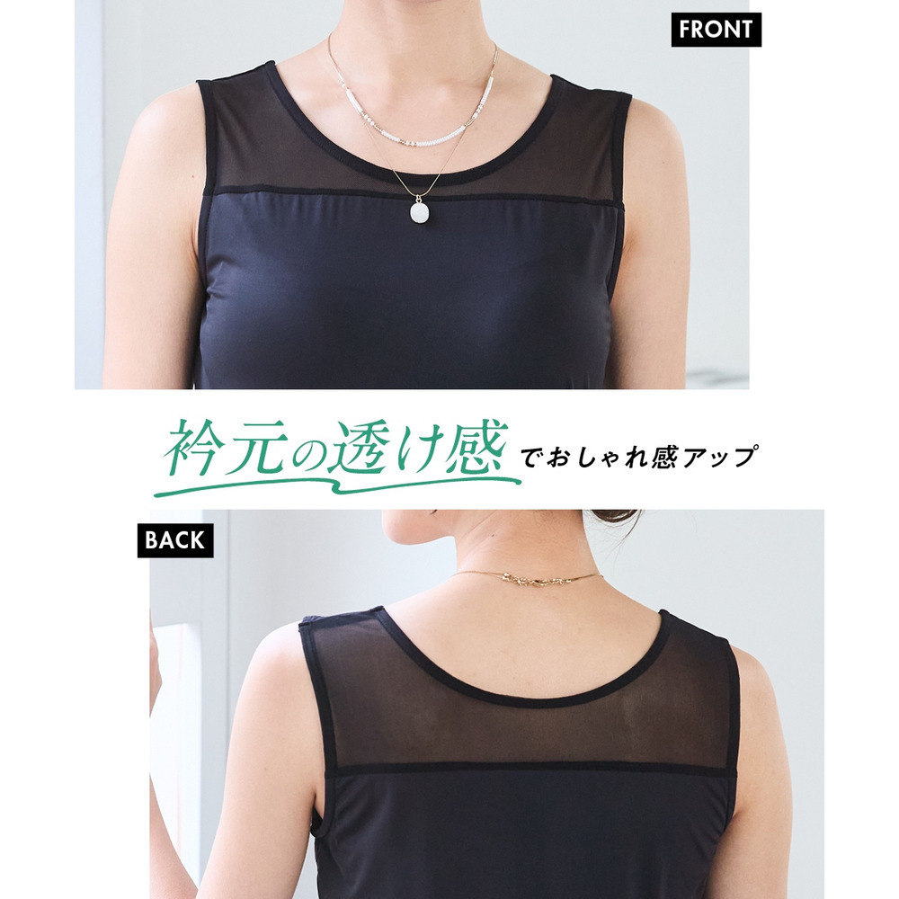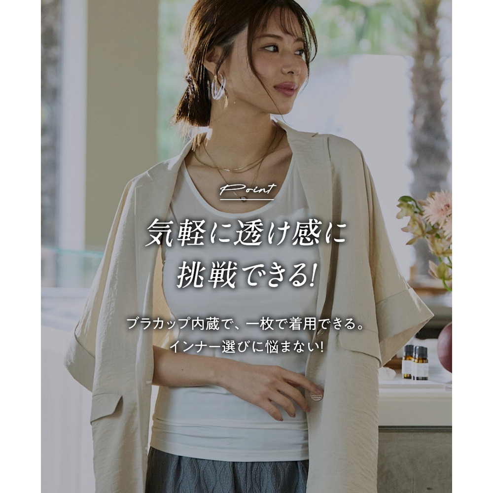 さらにブラカップを内蔵することで、ブラジャーのストラップやラインを気にすることなく、美しいデコルテラインをキープできます。