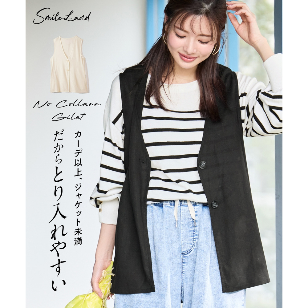 おしゃれと体型カバーを両立したノーカラージレが登場しました。