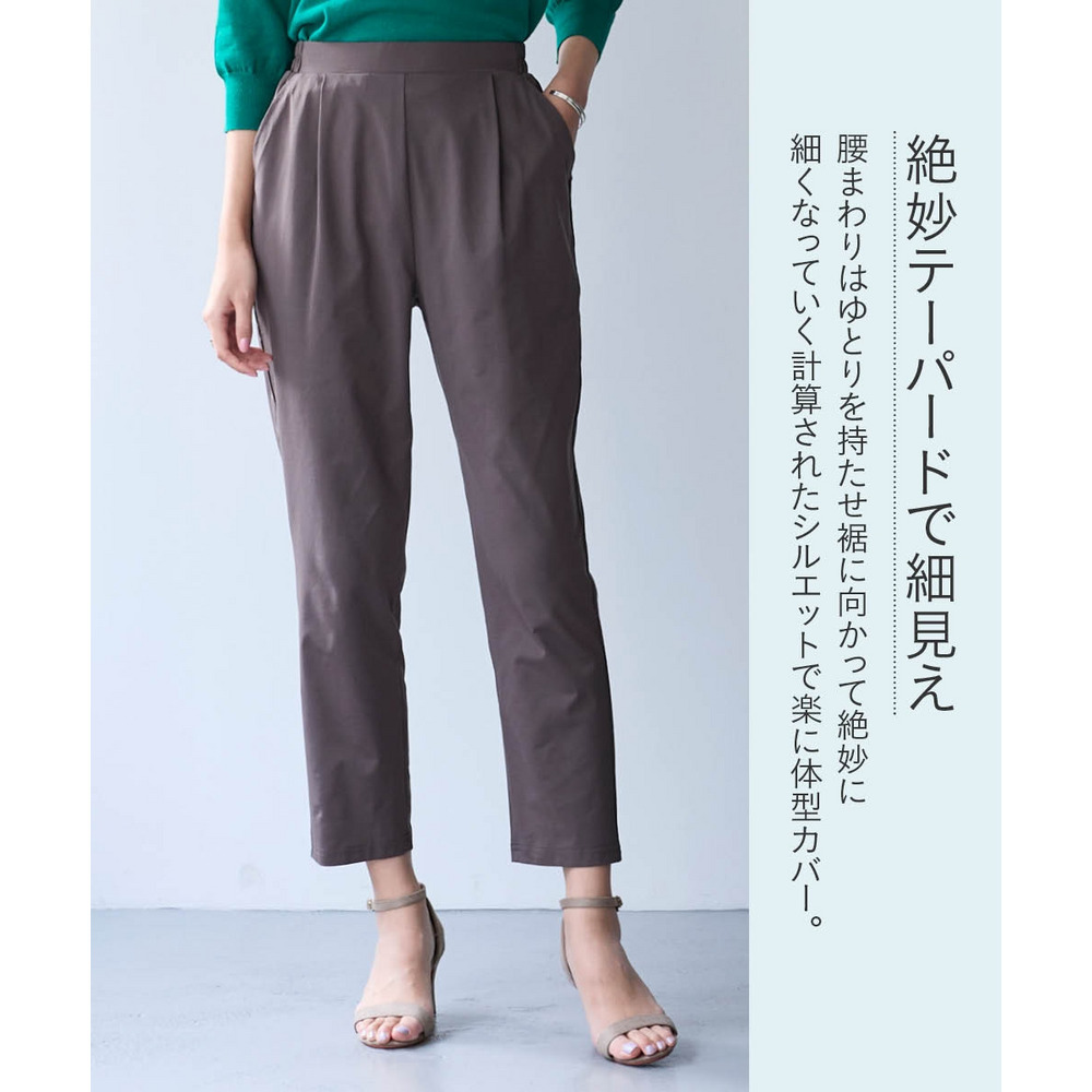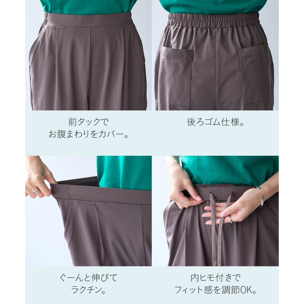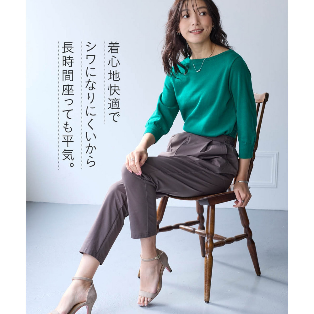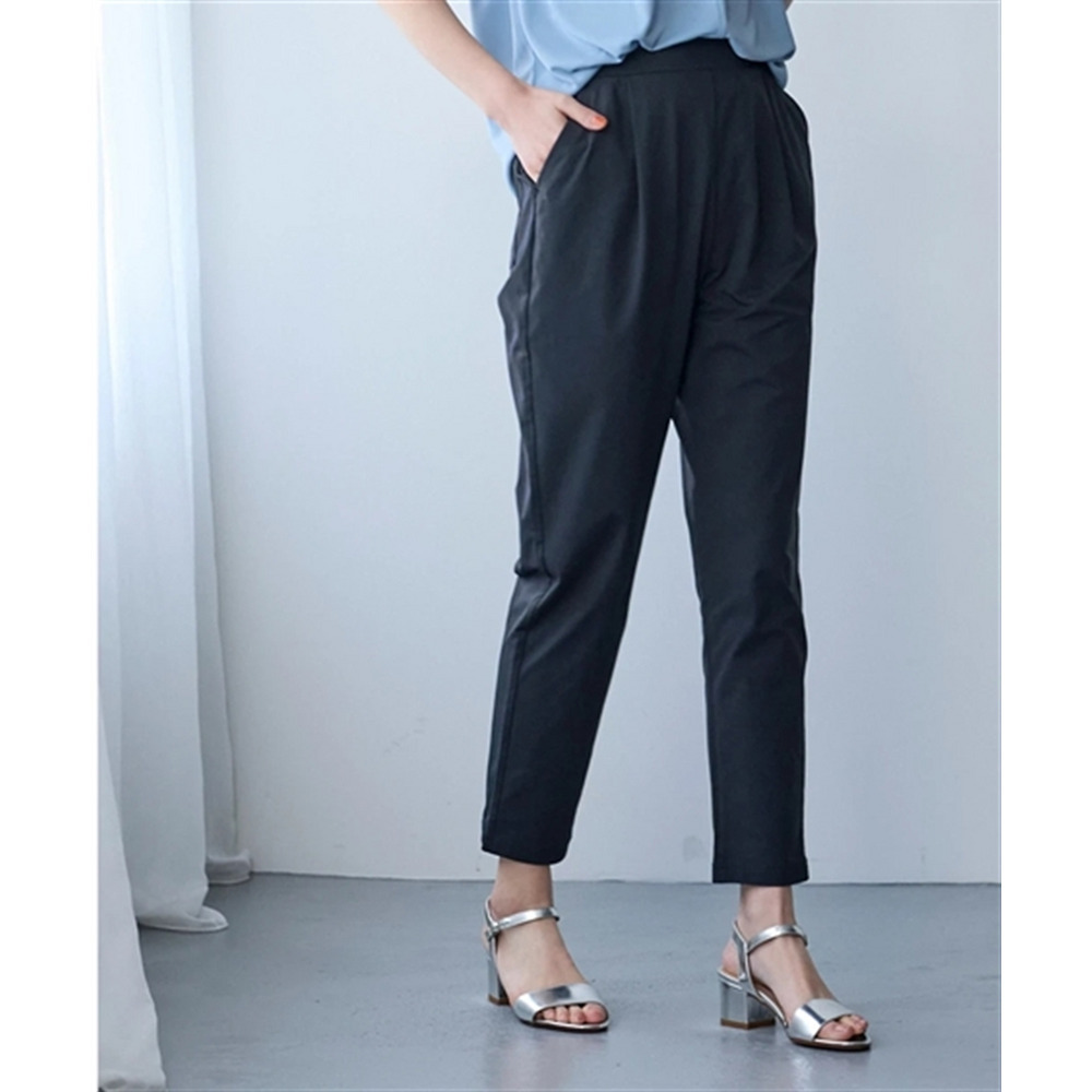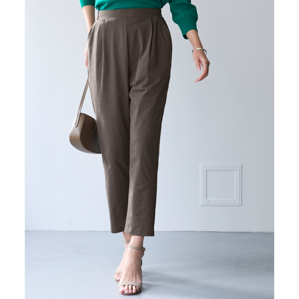 オフィスにも使えるすっきり脚長に見えるベーシックシルエット フロント部分のタック仕様がさりげなくお腹まわりをカバーします