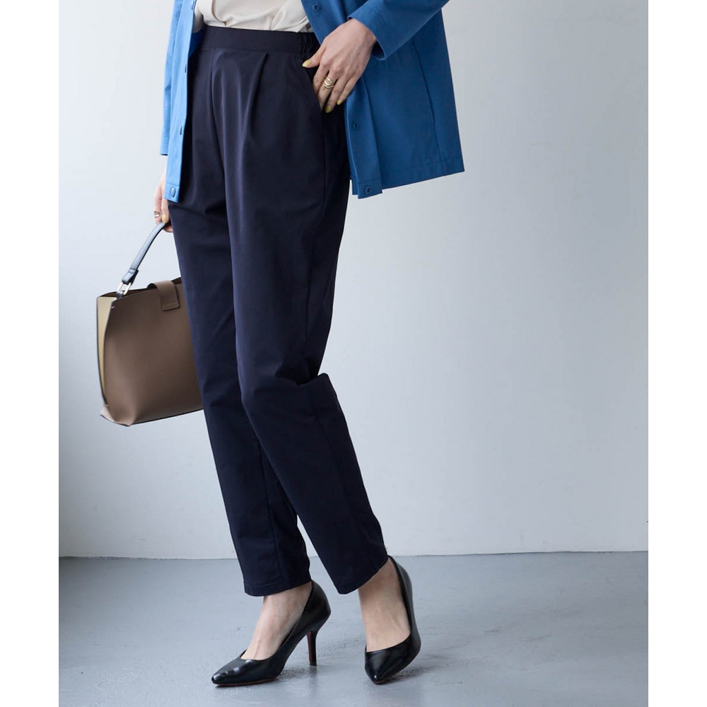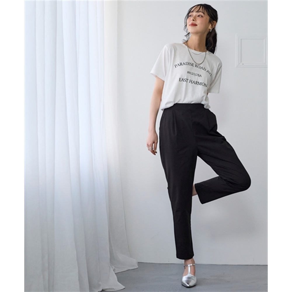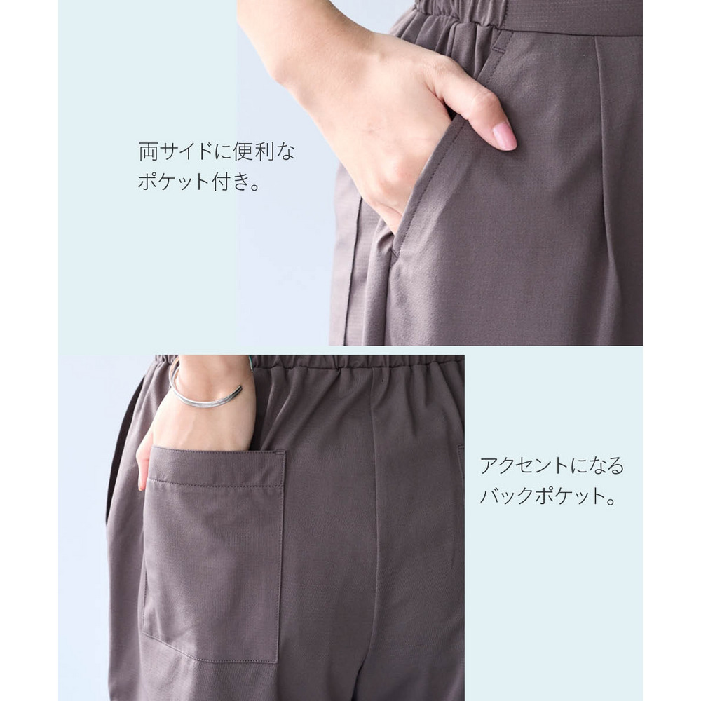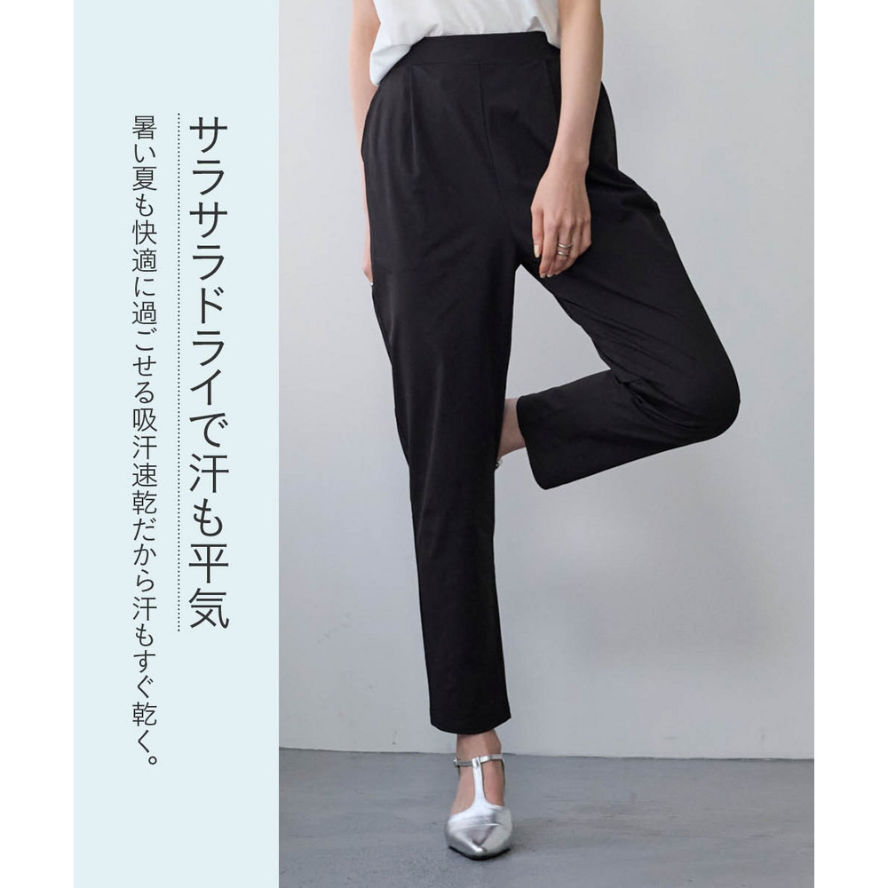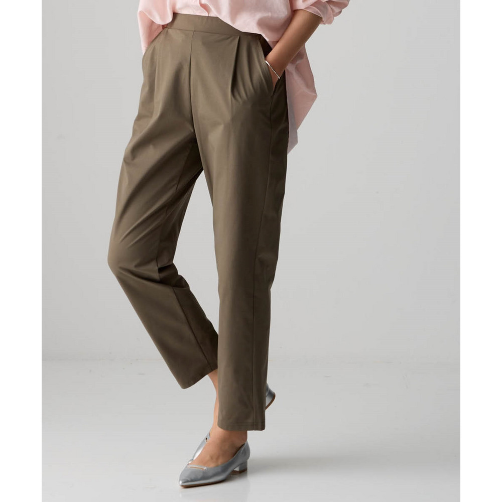 オフィスにも使えるすっきり脚長に見えるベーシックシルエット フロント部分のタック仕様がさりげなくお腹まわりをカバーします