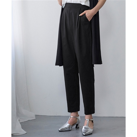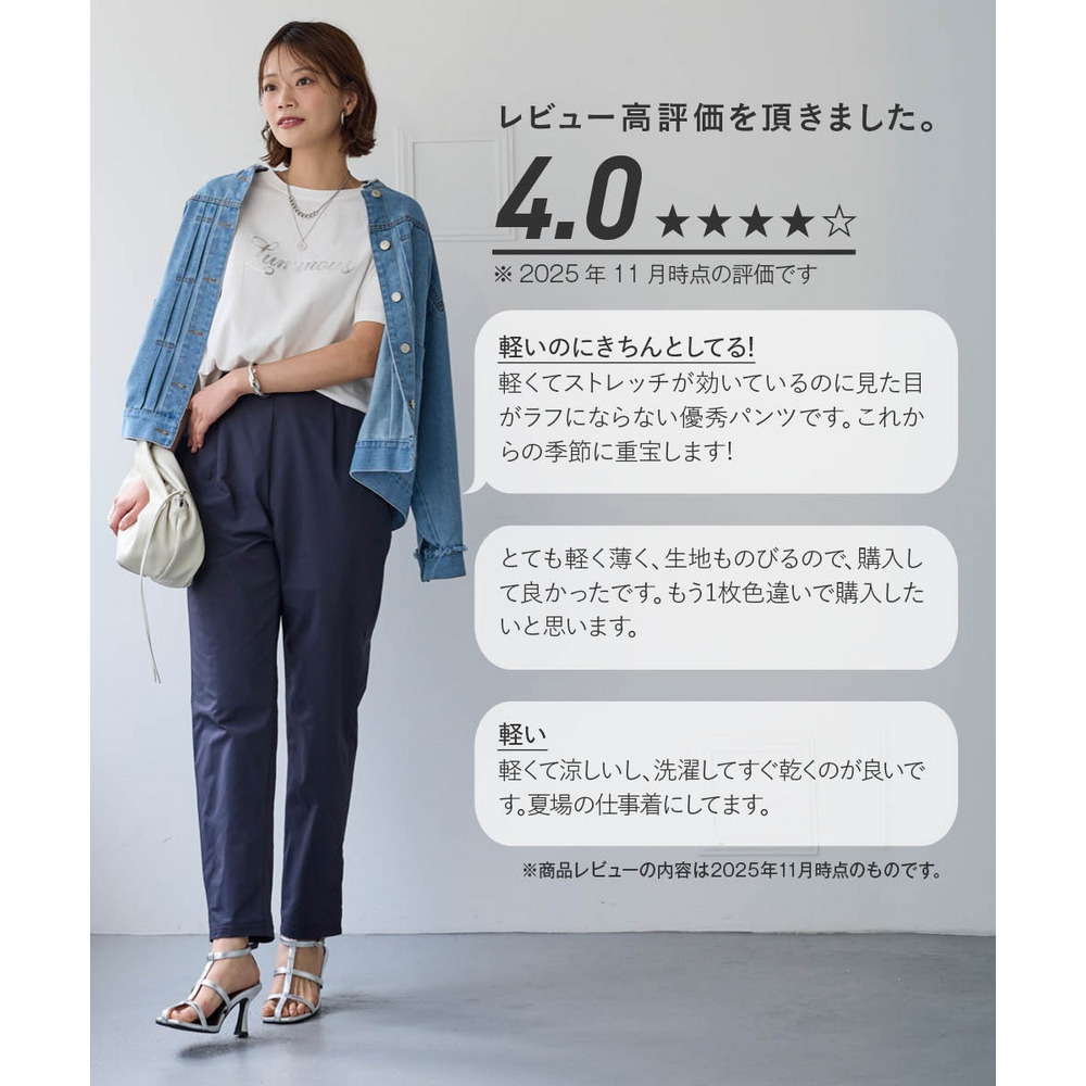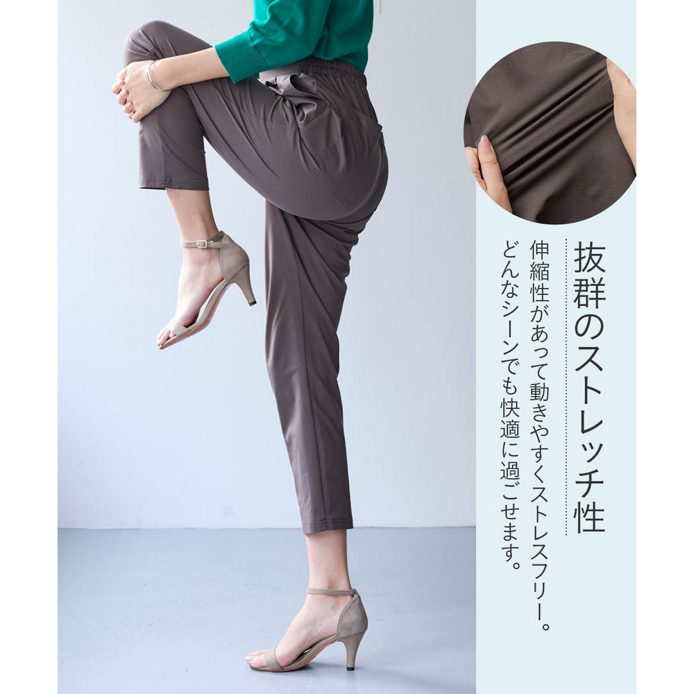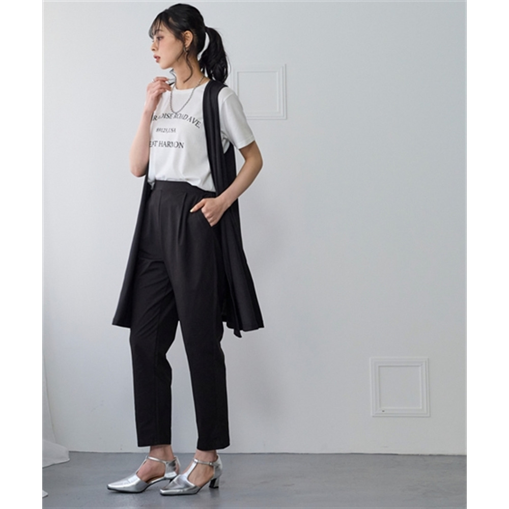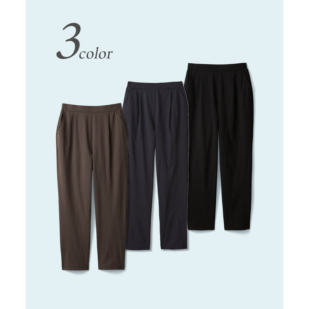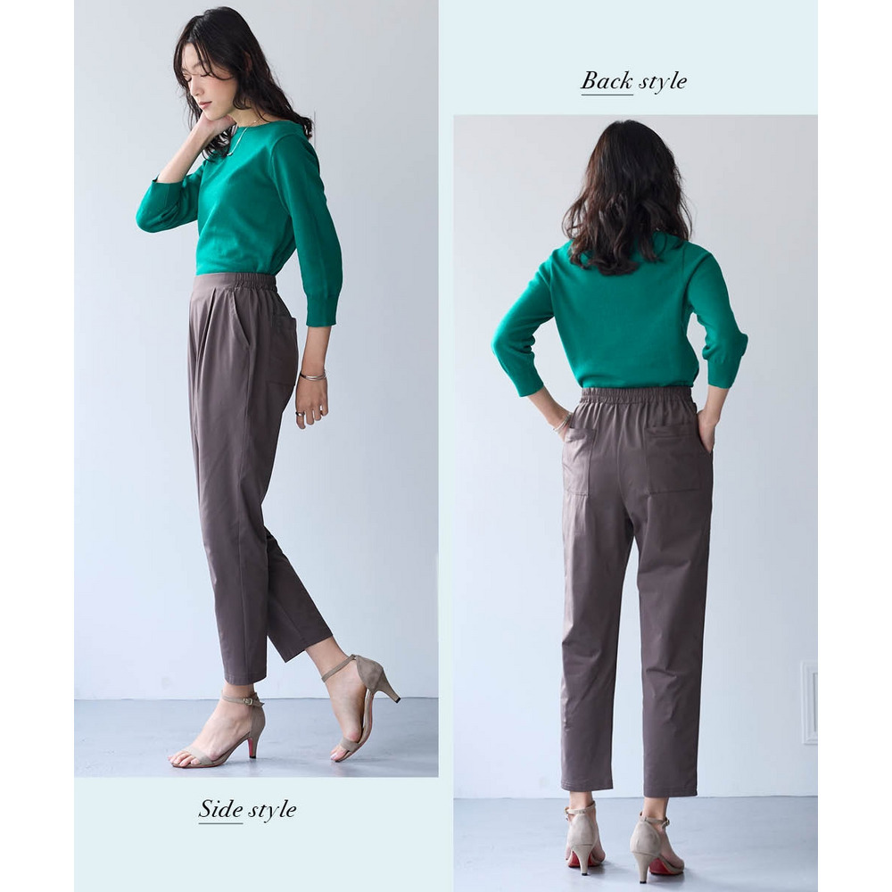 オフィスにも使えるすっきり脚長に見えるベーシックシルエット フロント部分のタック仕様がさりげなくお腹まわりをカバーします